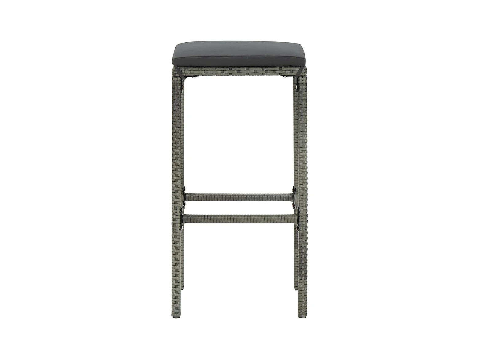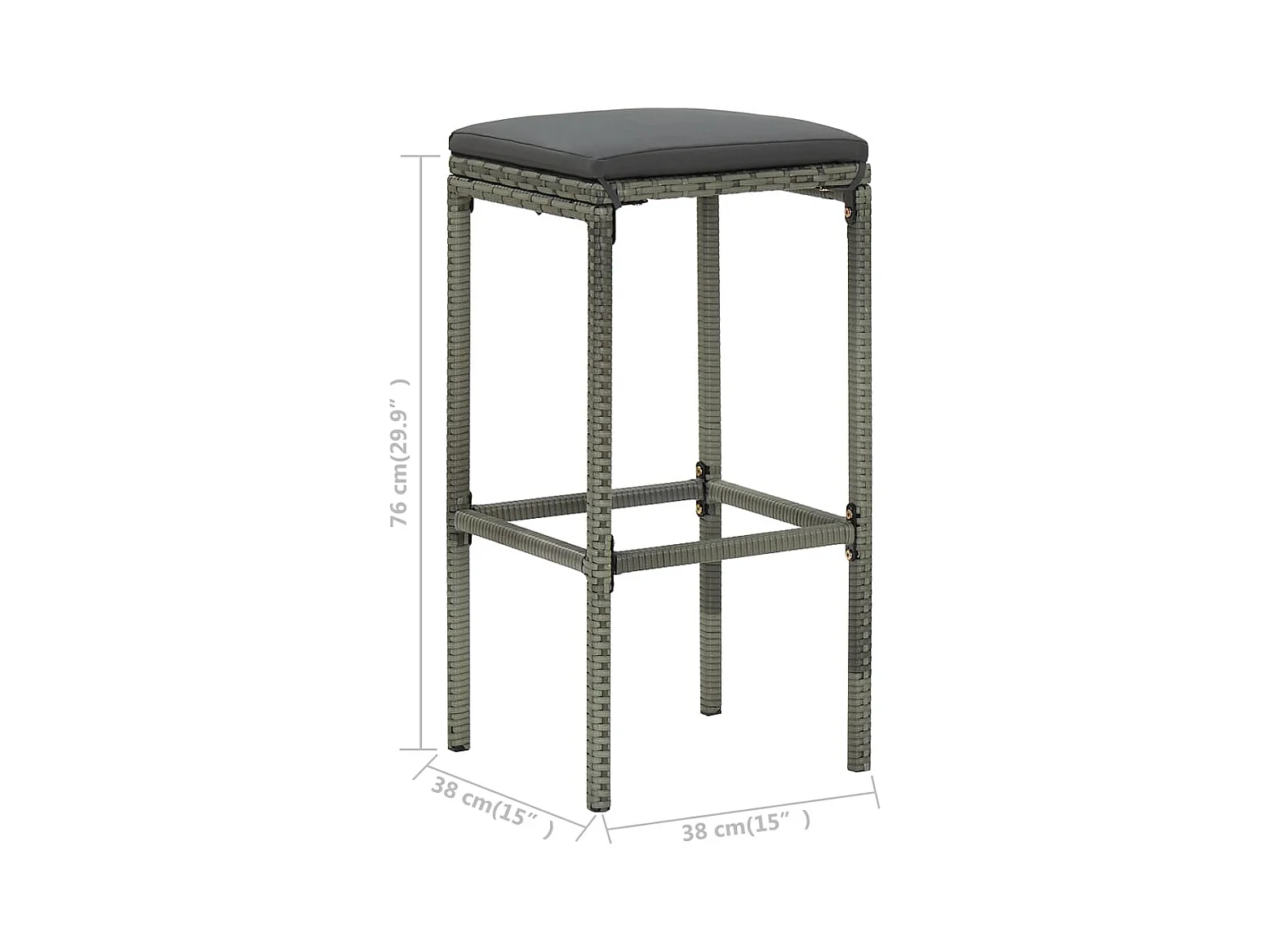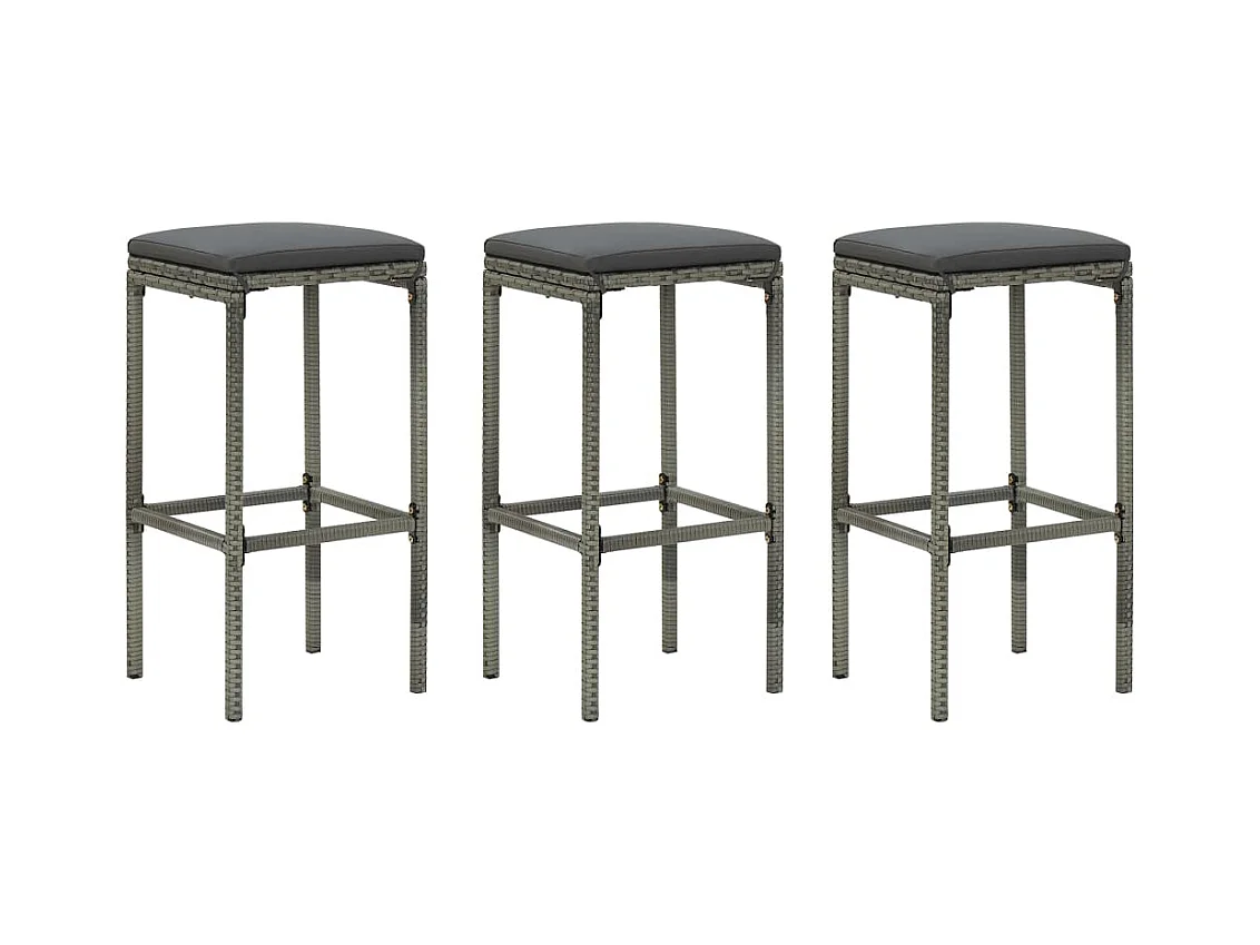 Taburetes de bar con cojines, juego de 3, gris, resina trenzada