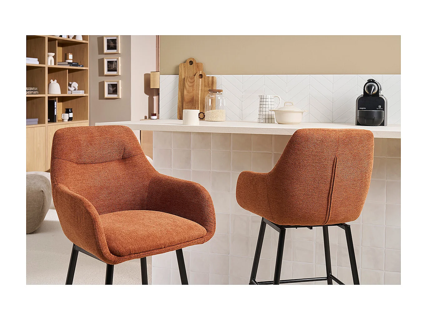 Taburetes de bar giratorios 360° en tela efecto terciopelo texturizado tierra quemada y metal H65.5 cm (juego de 2) ALESS