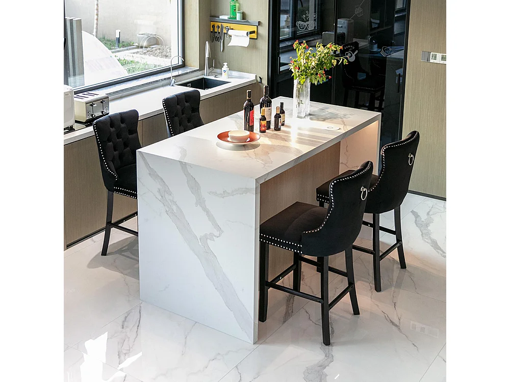 Taburete Valora KODA, terciopelo negro, diseño moderno (x2)