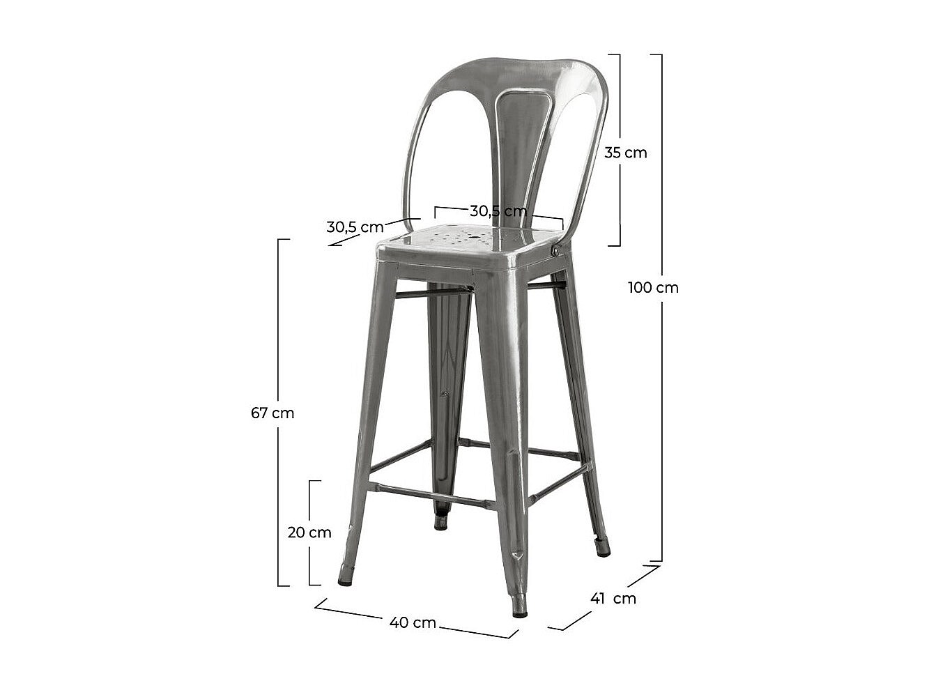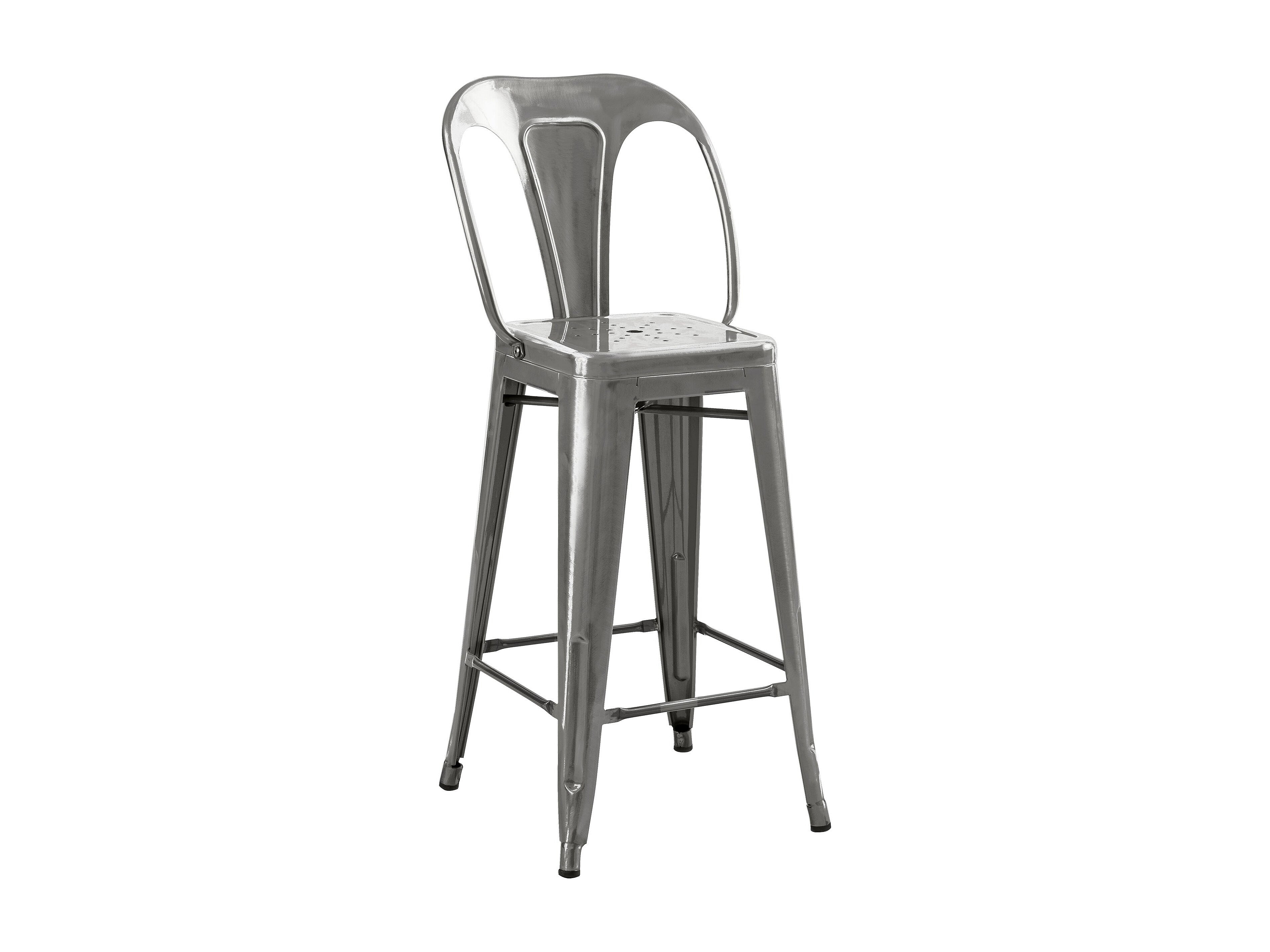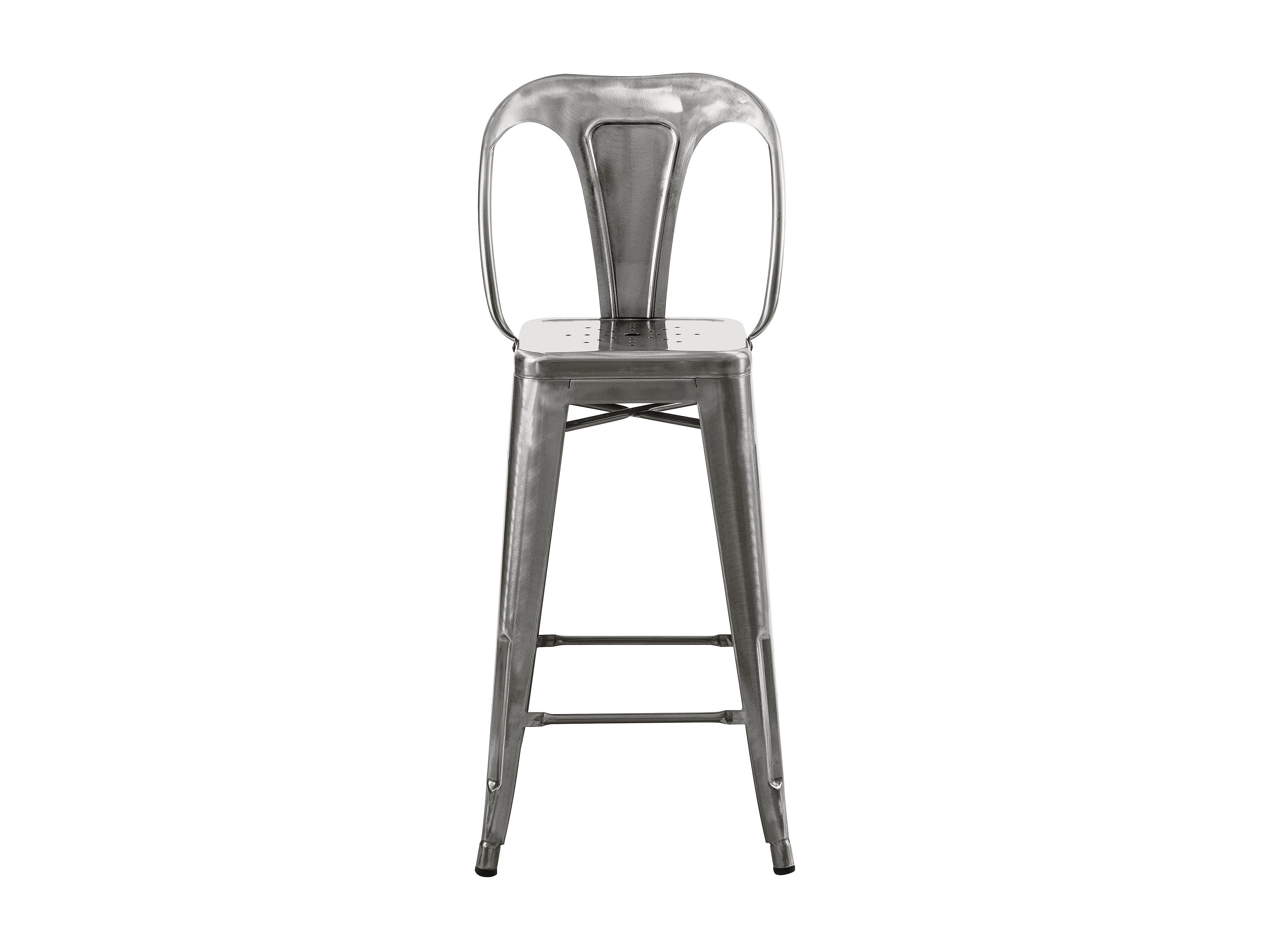 Taburete industrial en acero metalizado con respaldo bajo (76cm) - Bistro - Metálico