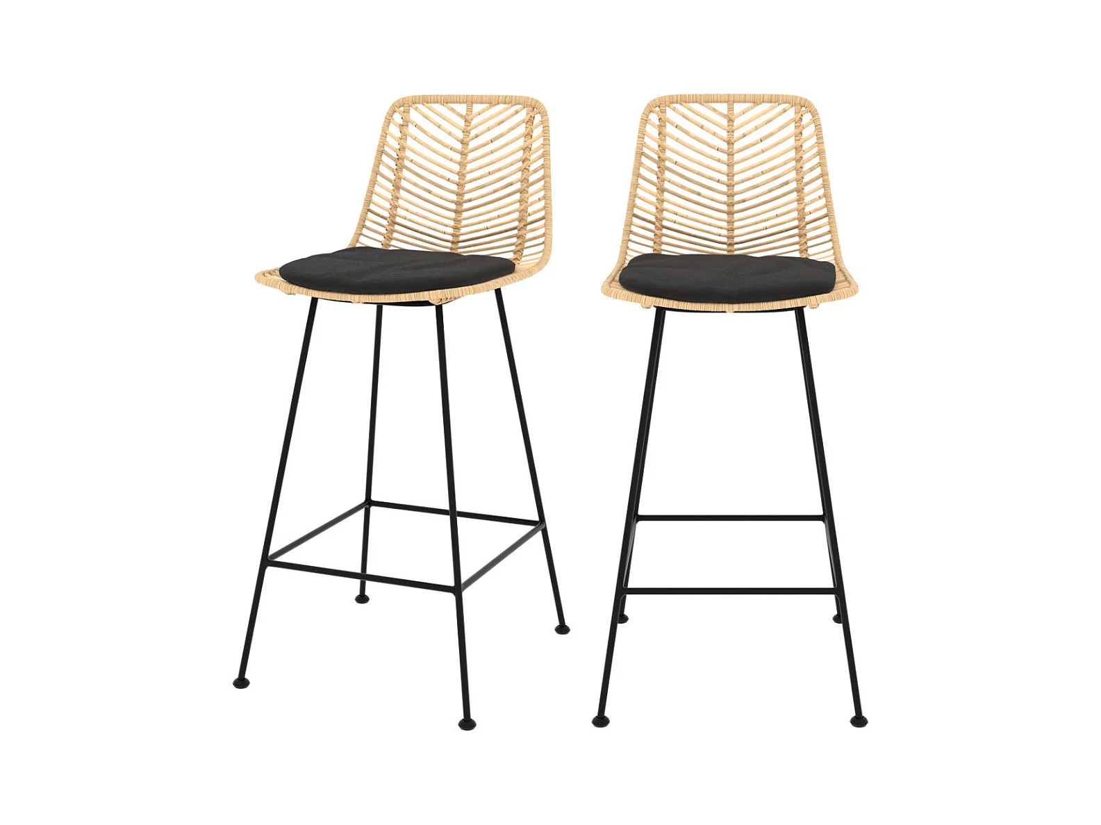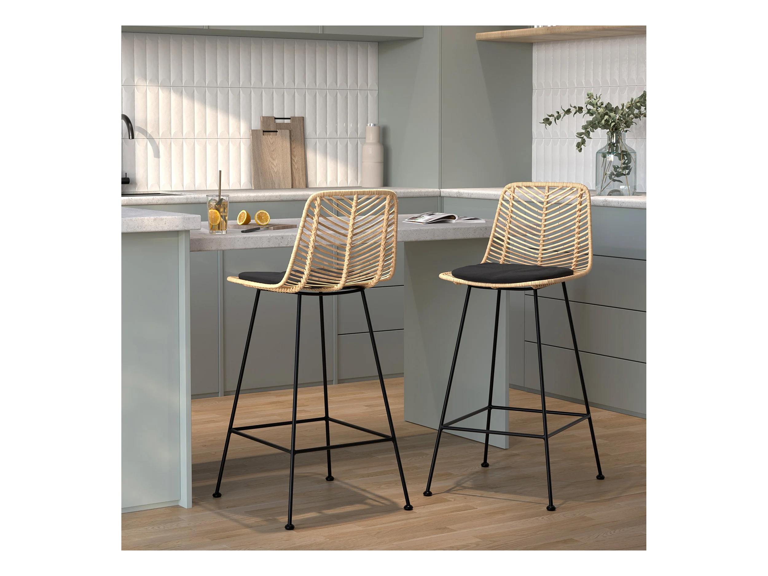 Set de 2 sillas para isla central en ratán y metal negro 66 cm - Goa