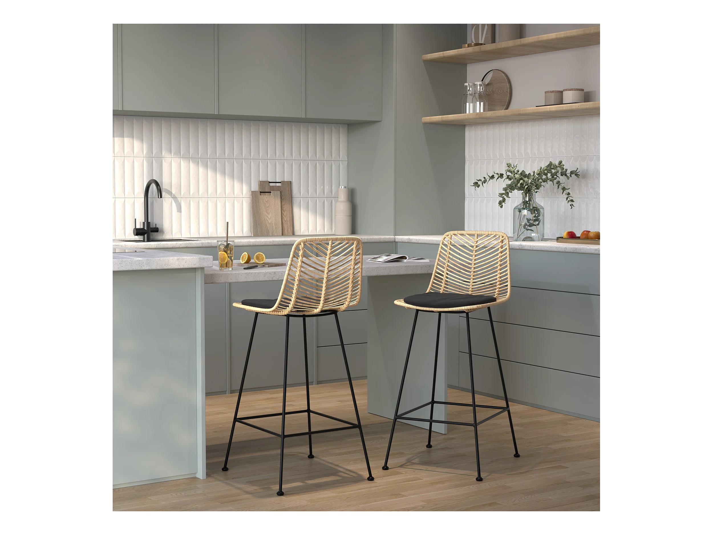 Set de 2 sillas para isla de cocina en ratán natural 66 cm - Tamara