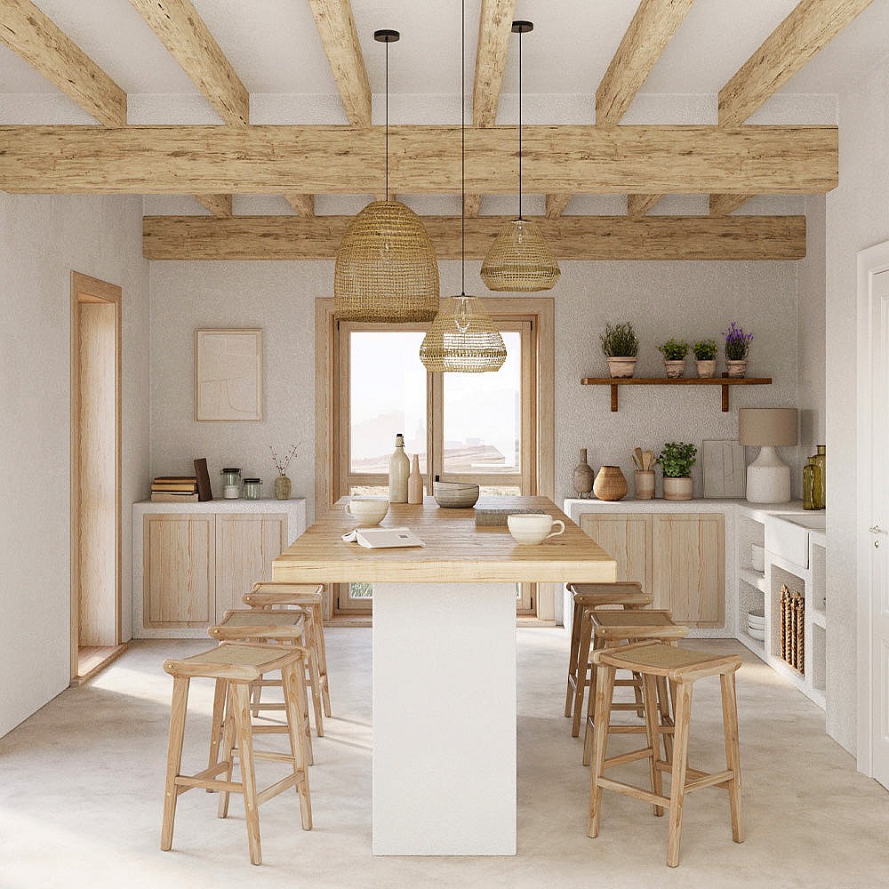 Taburetes para isla de cocina de teca y ratán natural 65 cm - Omaha