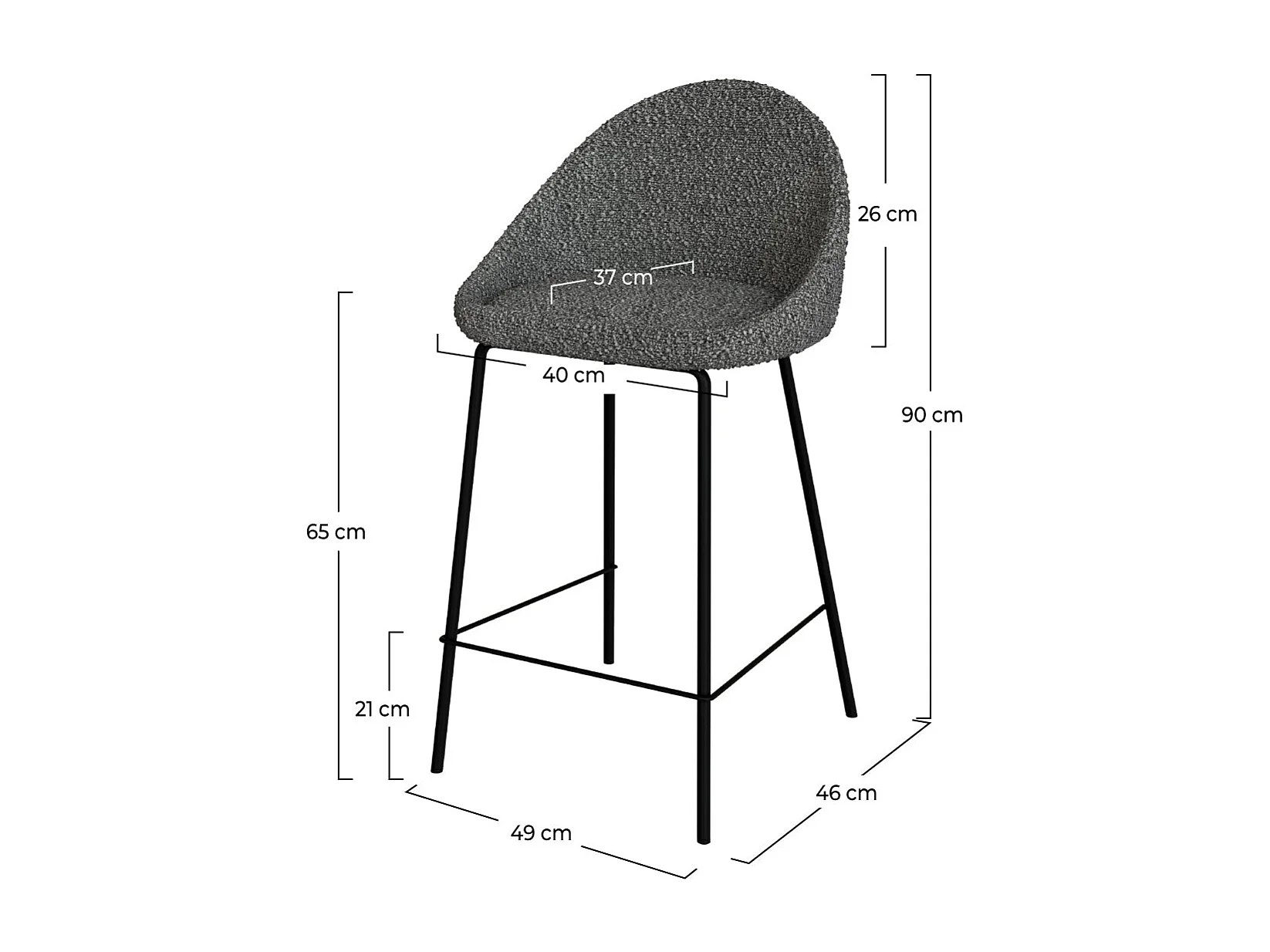 Set de 2 sillas para isla de cocina en tela gris 65 cm - Misty