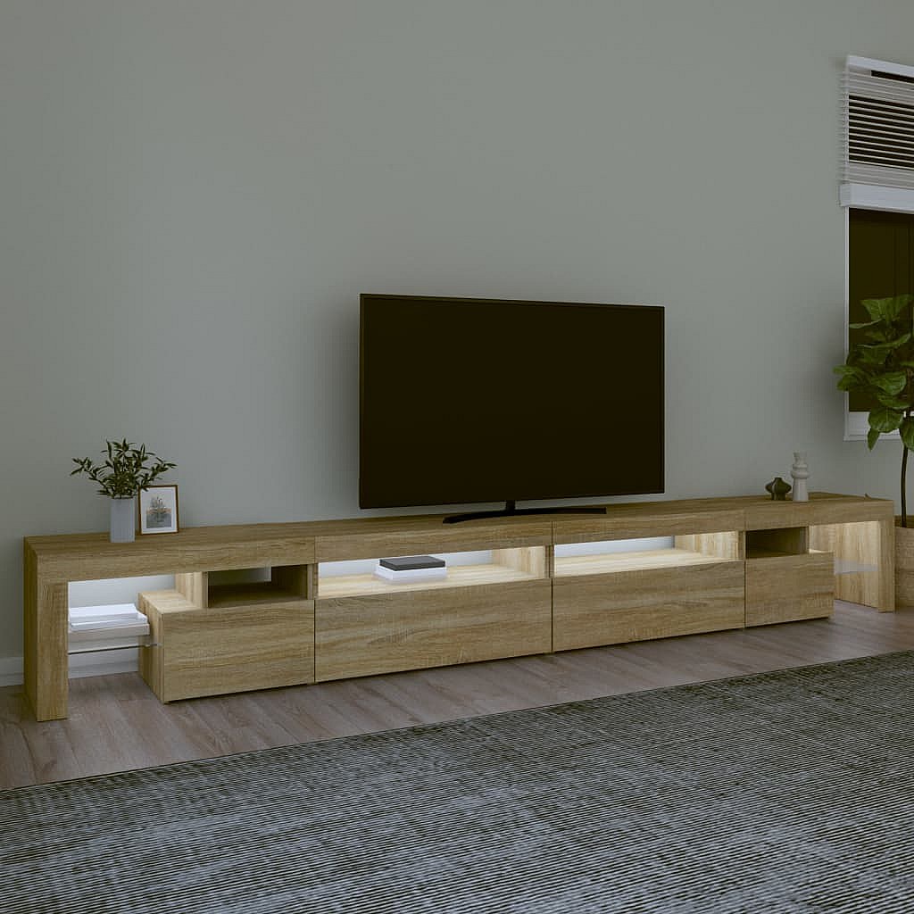 Tahlequah Mueble de TV con luces LED color roble Sonoma 290x36,5x40 cm