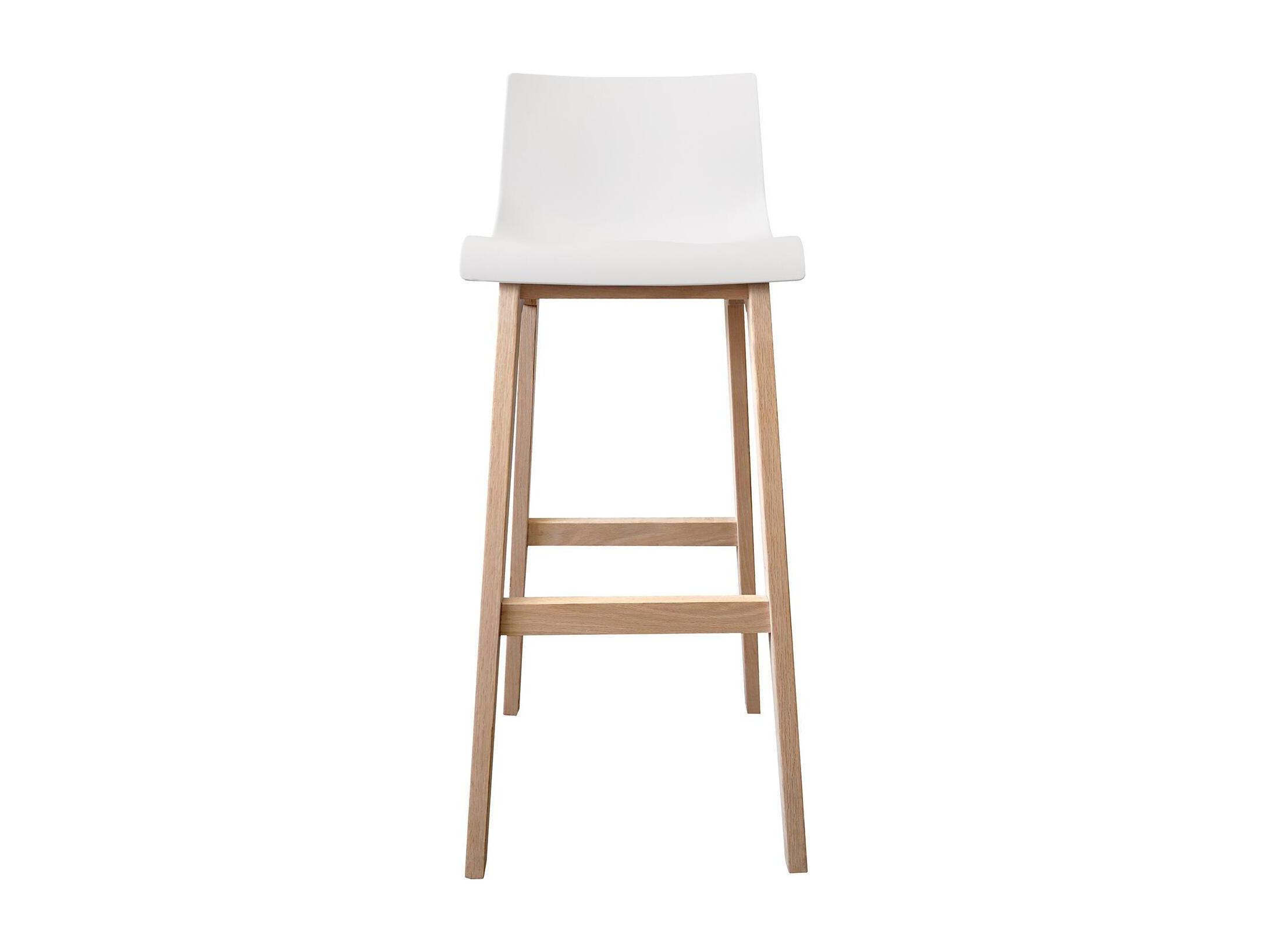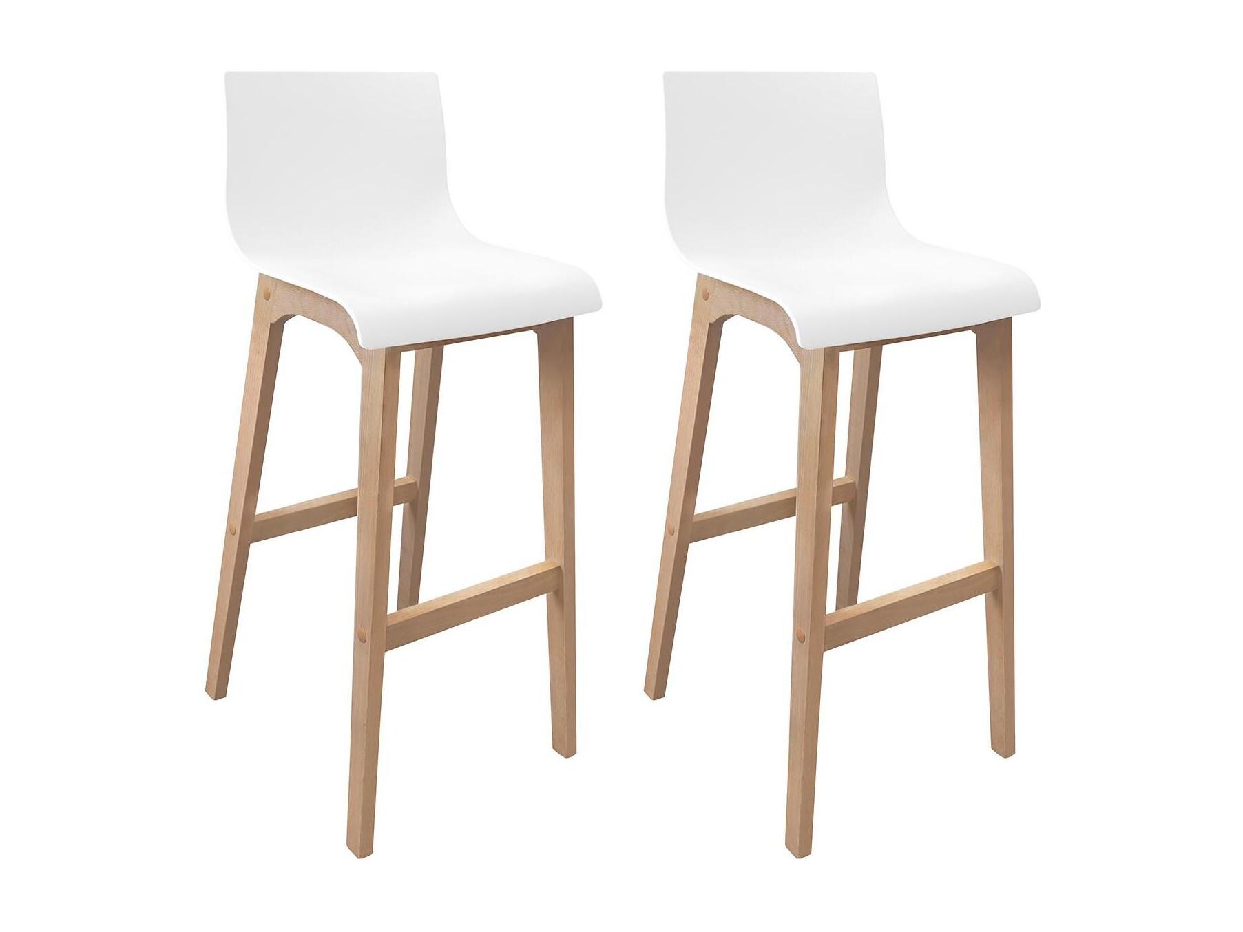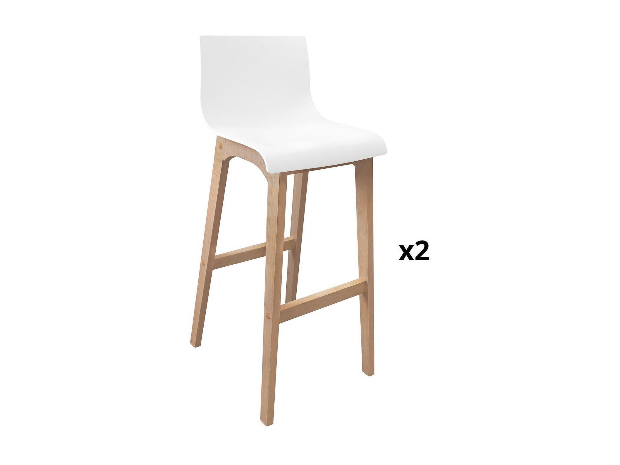Conjunto de taburetes de bar TANNA de roble de 75 cm con asiento de plástico blanco