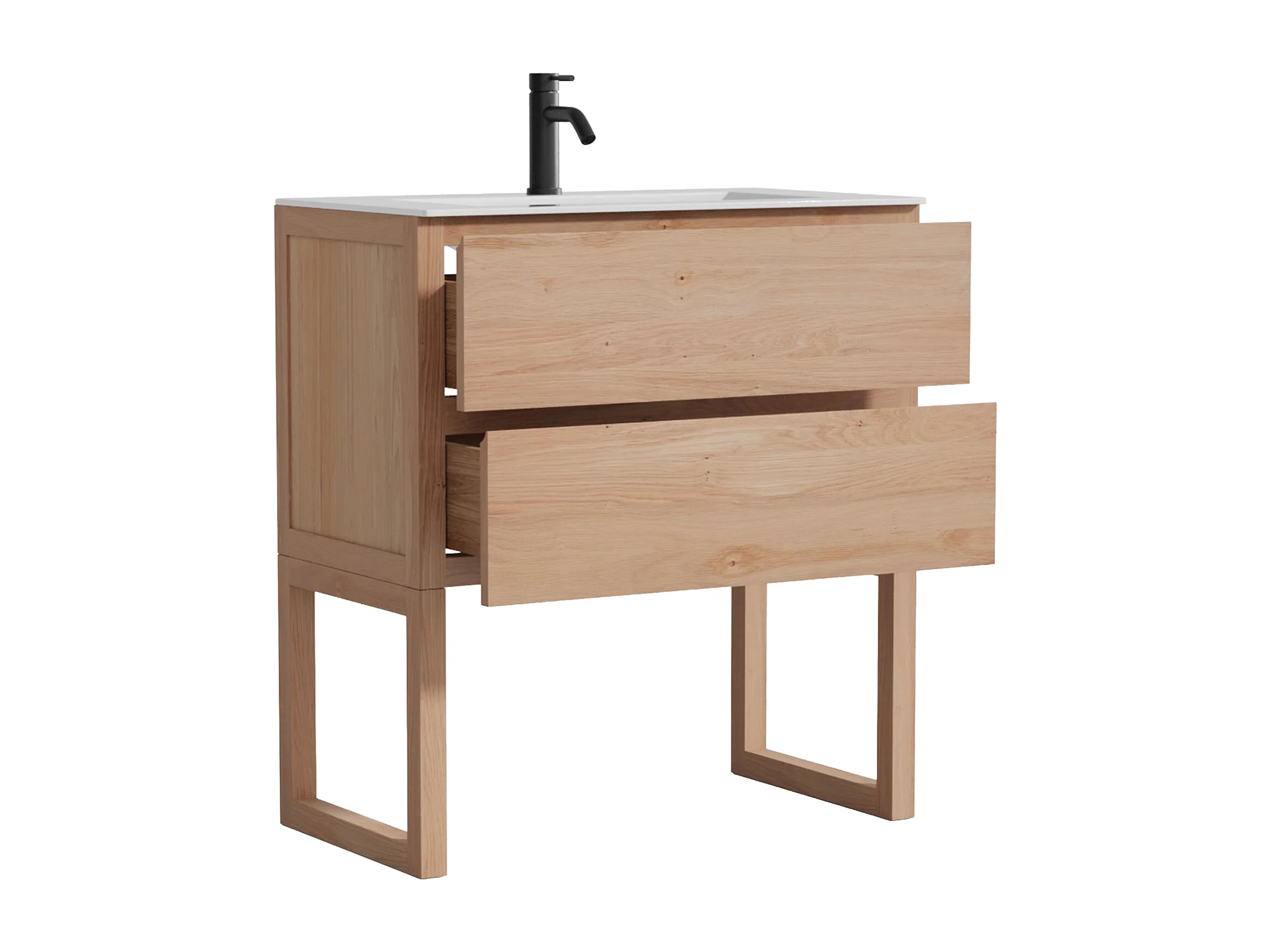 Mueble de baño de roble macizo con lavabo encastrado y grifo - Natural claro - 80 cm - TARELO