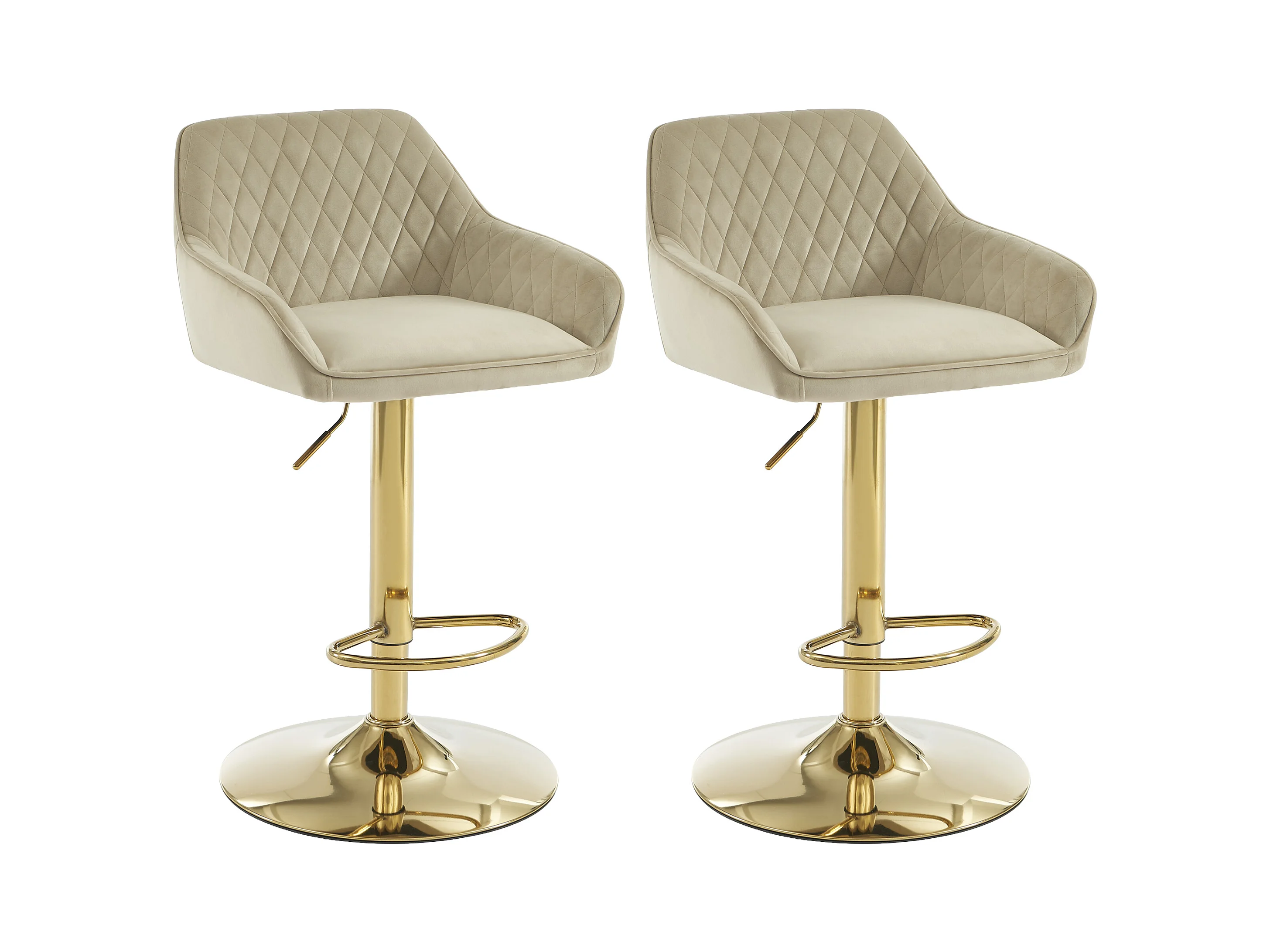 Juego de 2 taburetes de bar en terciopelo y metal dorado - Altura ajustable - Beige - TAVOA