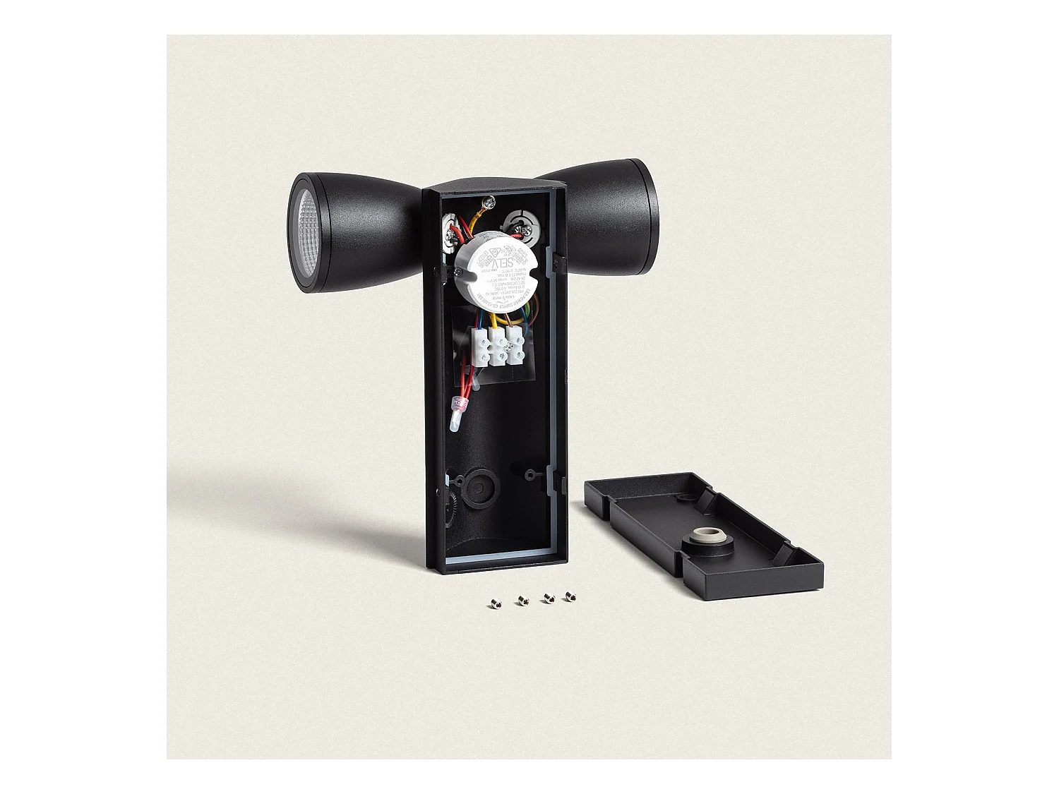 Aplique de Pared Exterior LED 12W Aluminio con Sensor de Movimiento PIR Abel Dos Focos Negro