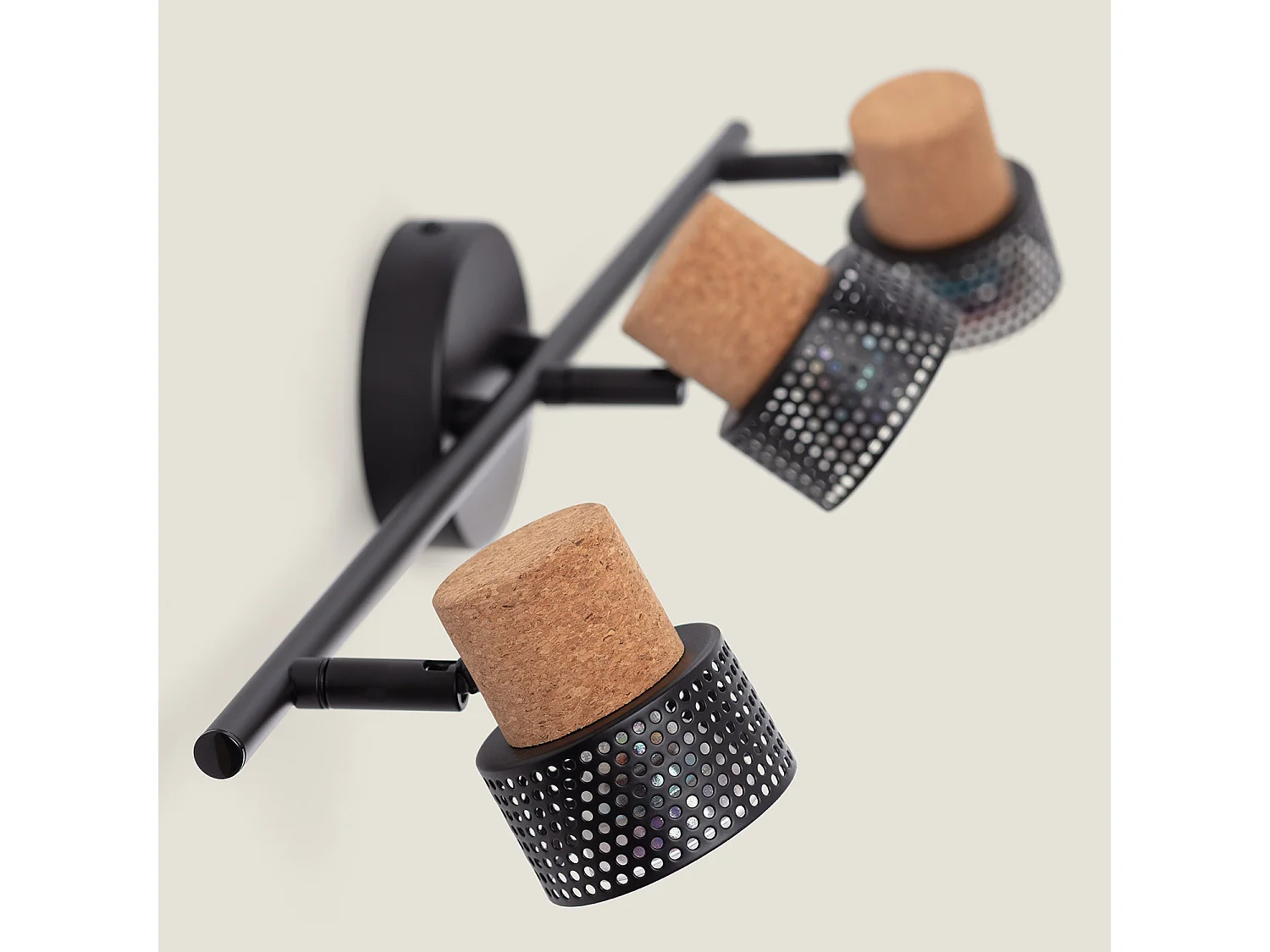 Lámpara de Pared Metal y Corcho Tres Focos Liksy Negro