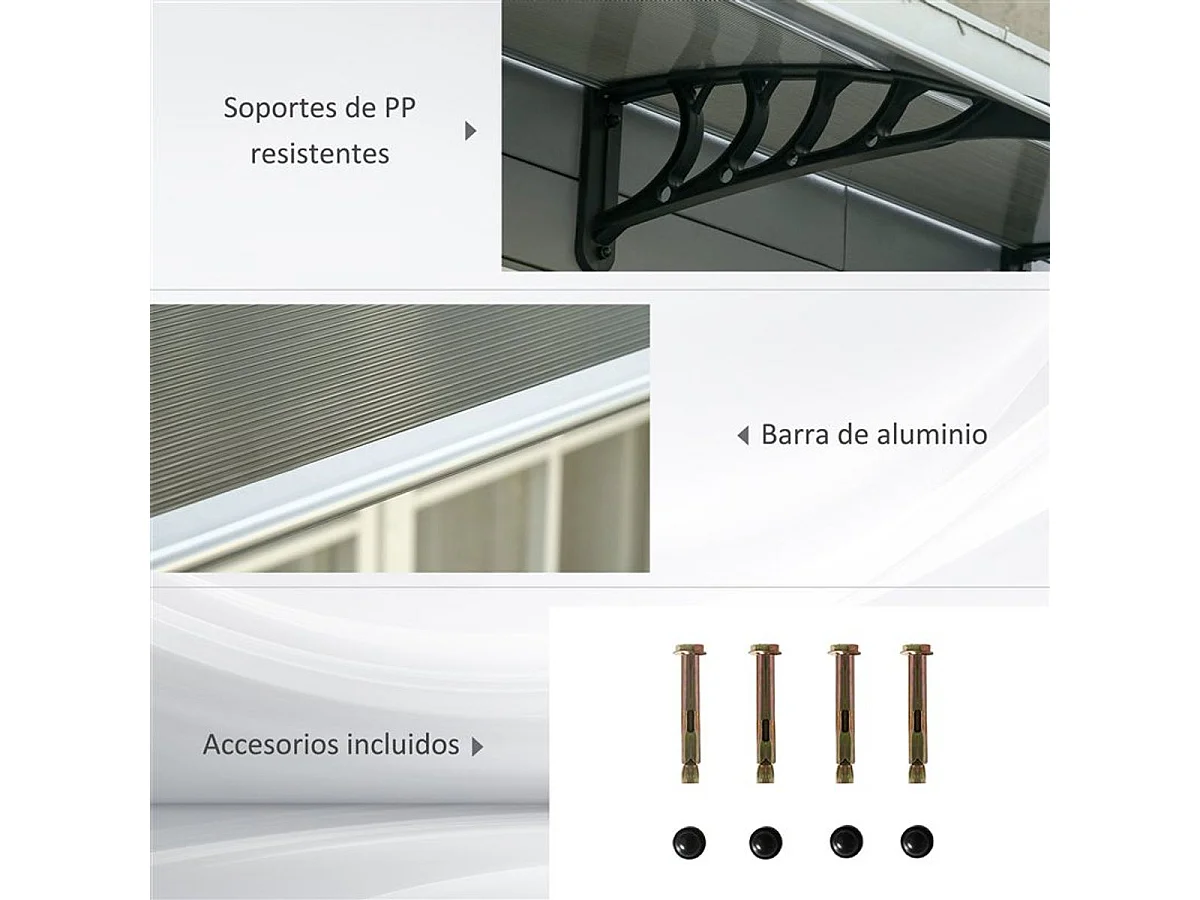 Marquesina puerta policarbonato gris y transparente 358,5x90cm ES80649