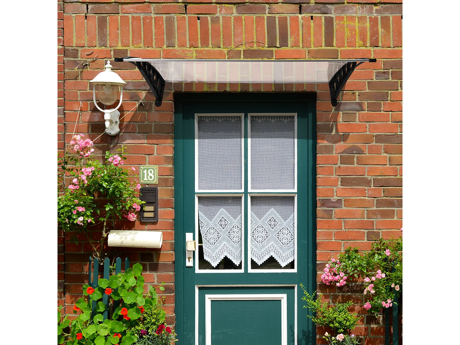Marquesina puerta policarbonato gris y transparente 152,5x90 cm ES11781