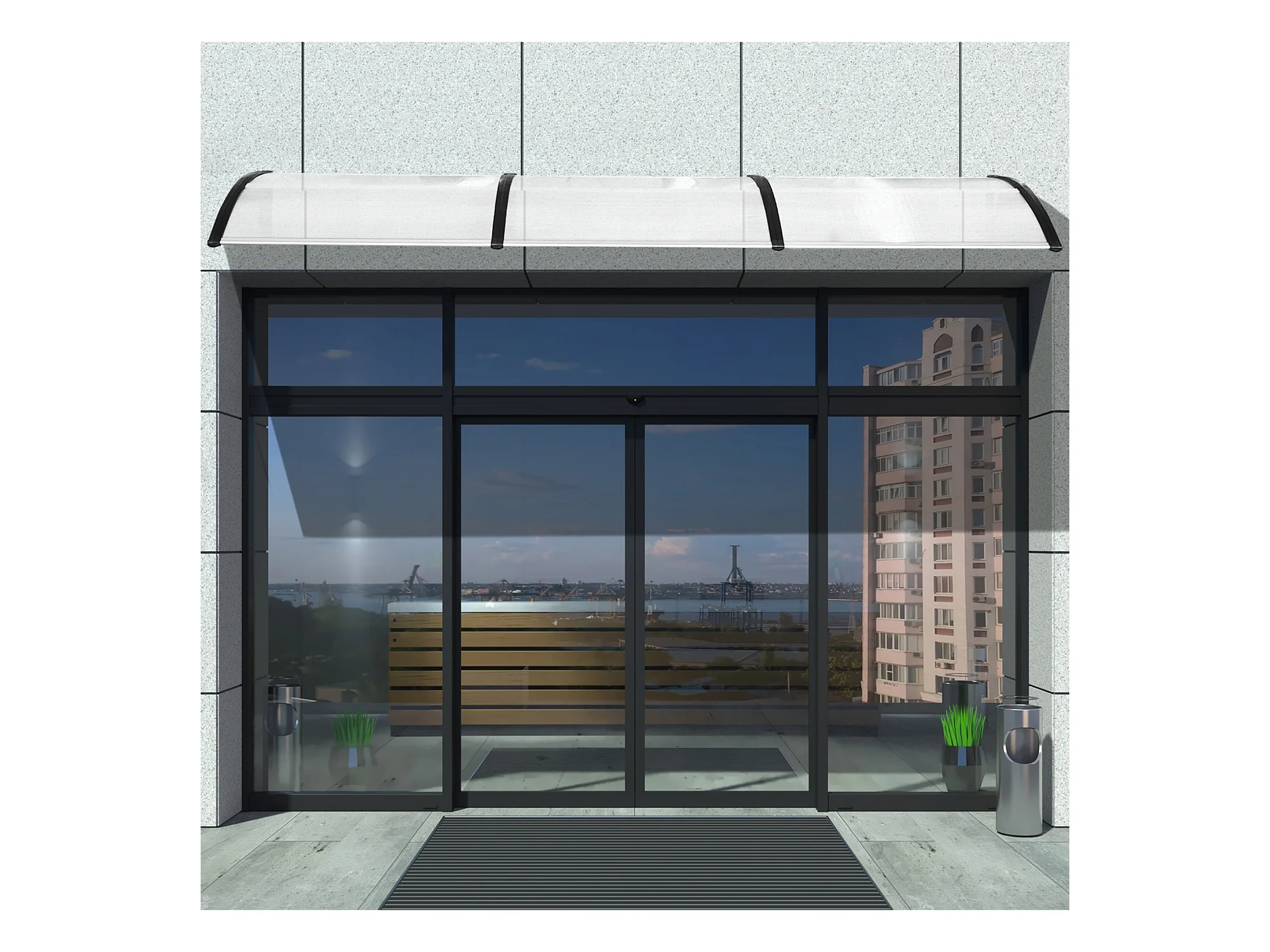 Marquesina puerta policarbonato gris y transparente 297,5x90cm ES14400