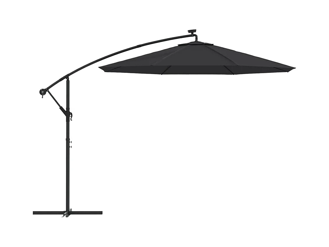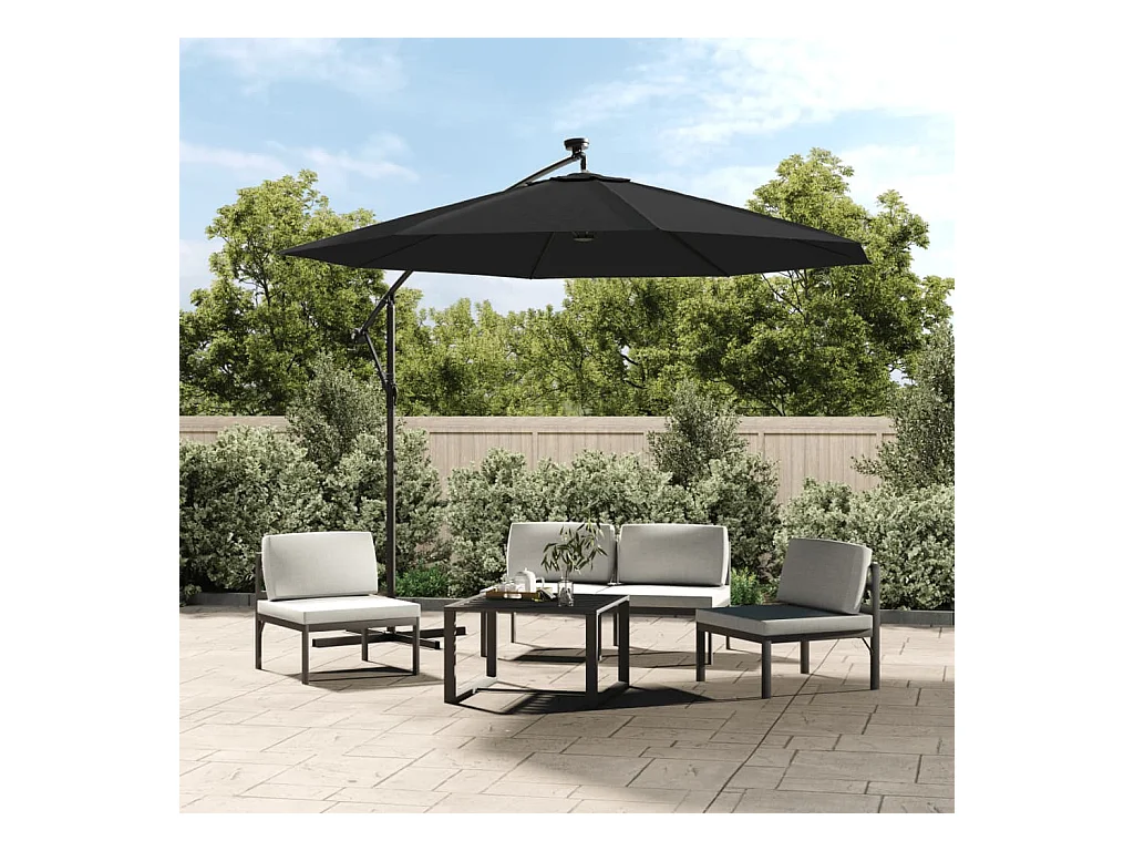 Sombrilla voladiza con luces LED y poste acero negra 300 cm ES471114