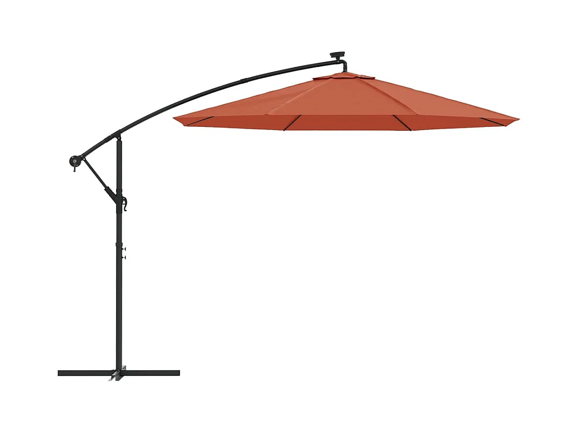 Sombrilla voladiza con luces LED y palo de acero terracota