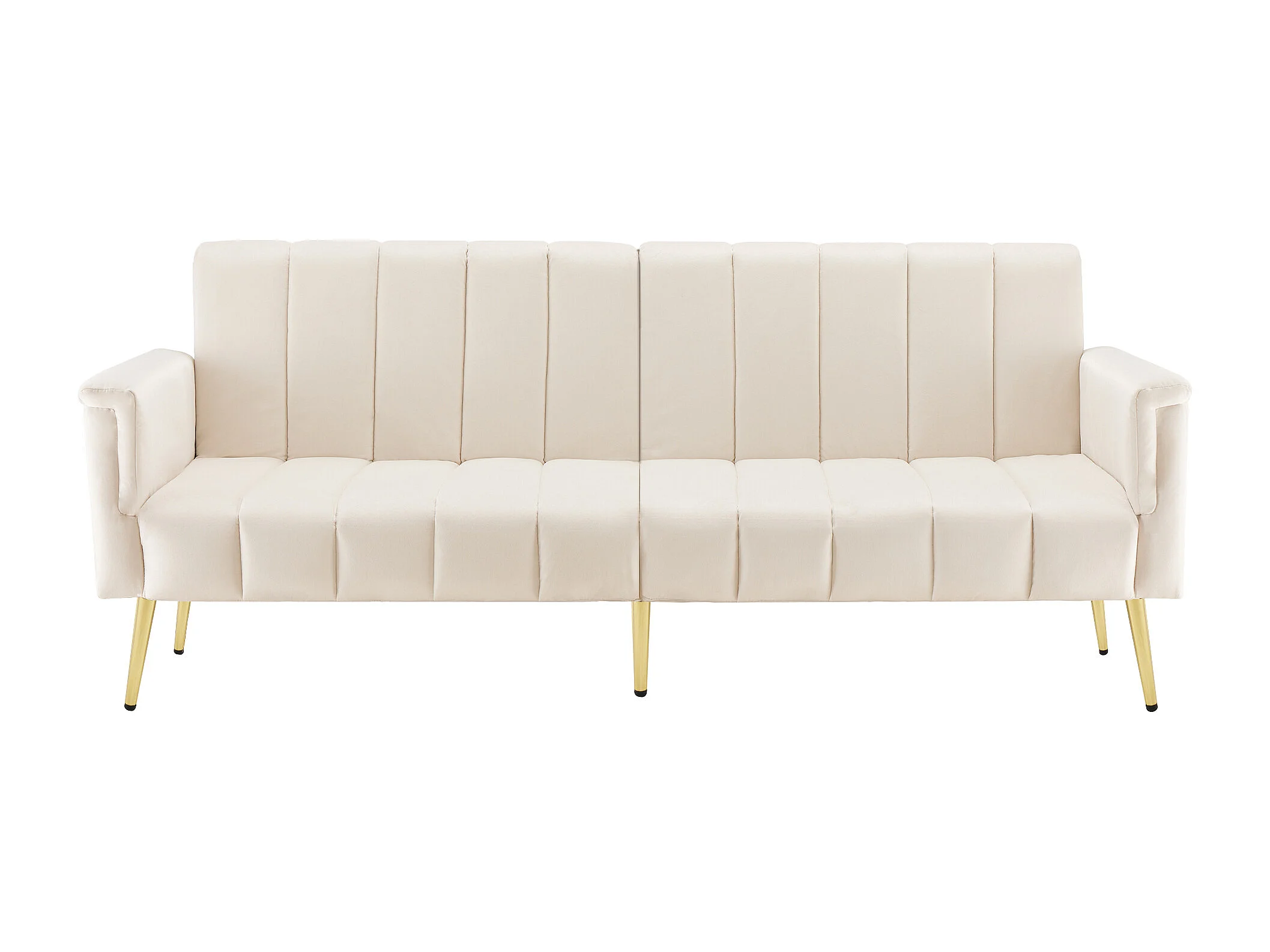 Tela de terciopelo, sofá cama plegable con pie auxiliar, sofá cama con función de dormir, beige