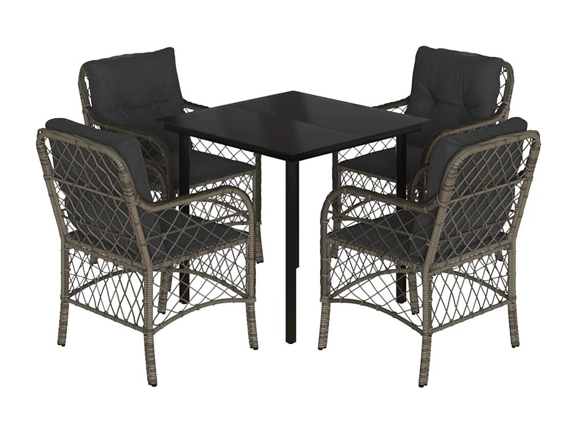 Garden Furniture - Set comedor de jardín 5 piezas con cojines ratán sintético gris
