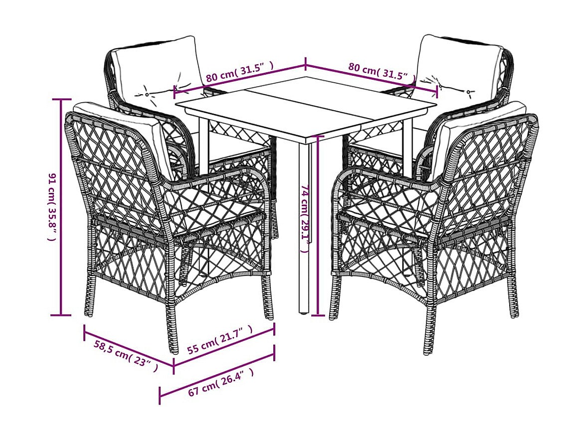 Thibodaux Set comedor de jardín 5 piezas con cojines ratán sintético gris