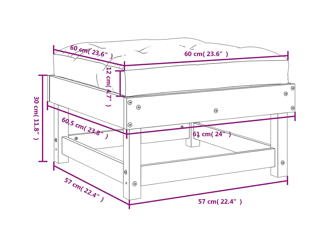 Tibor Taburete de jardín con cojín madera maciza de pino