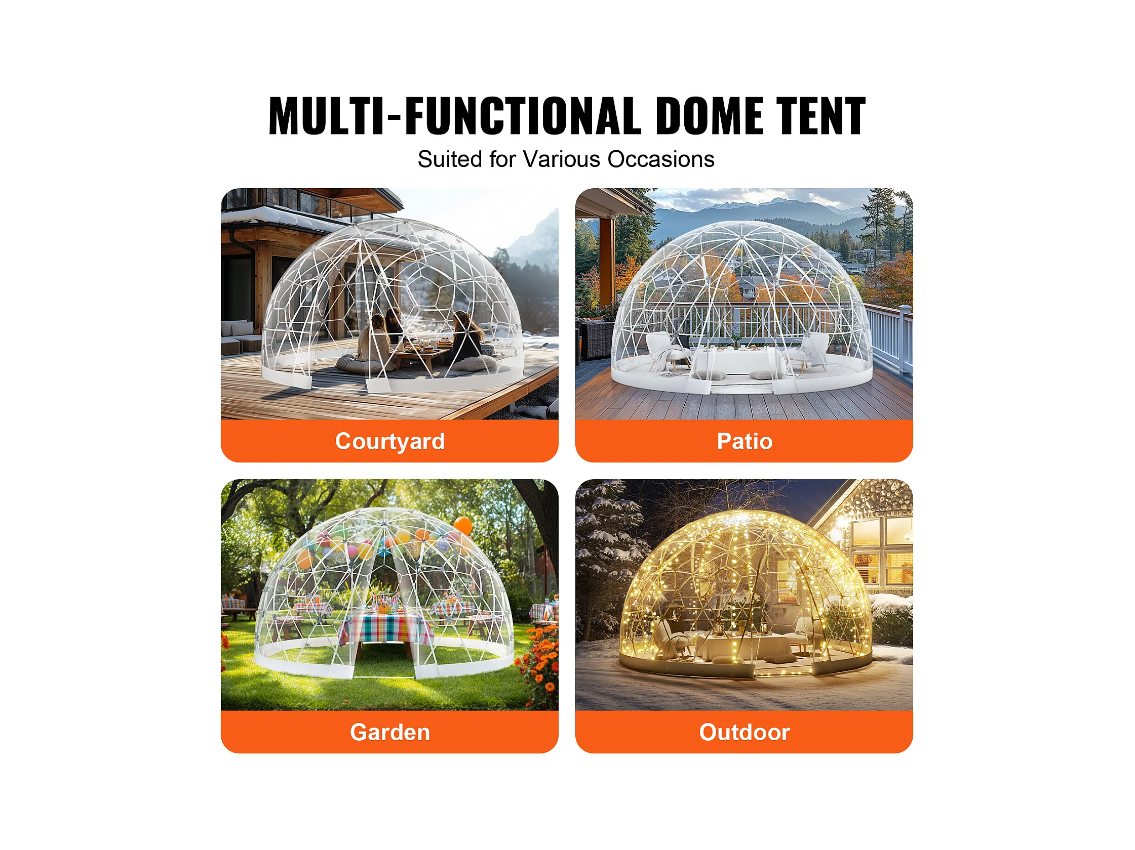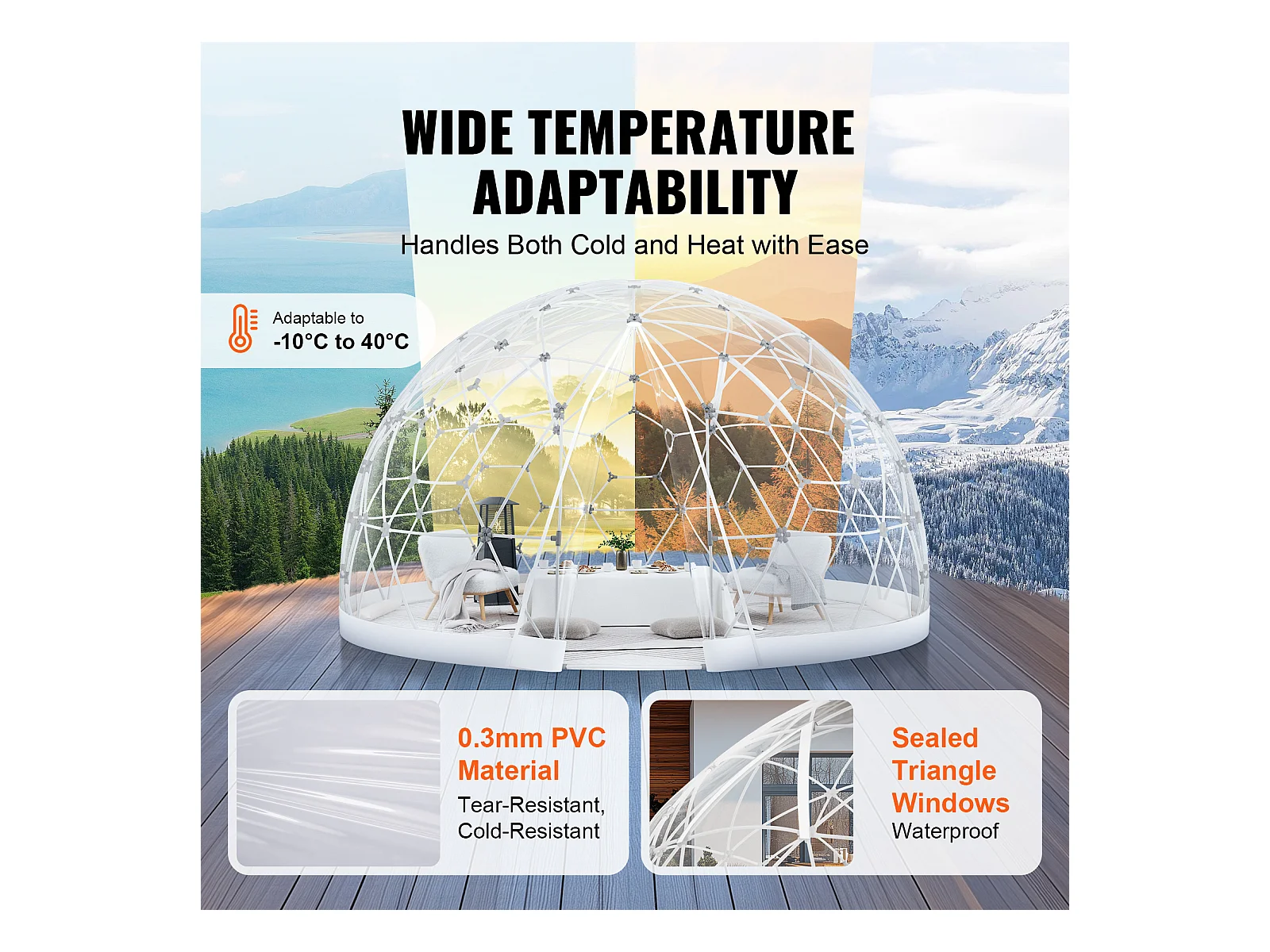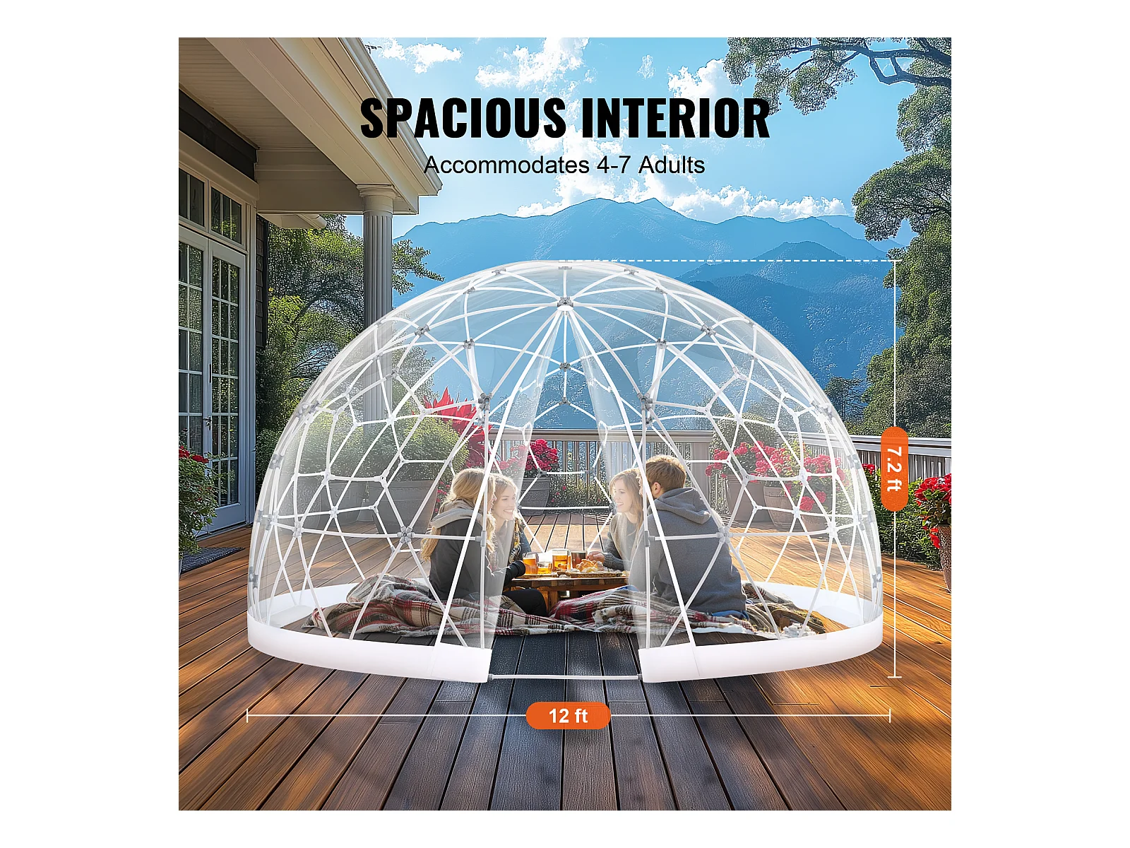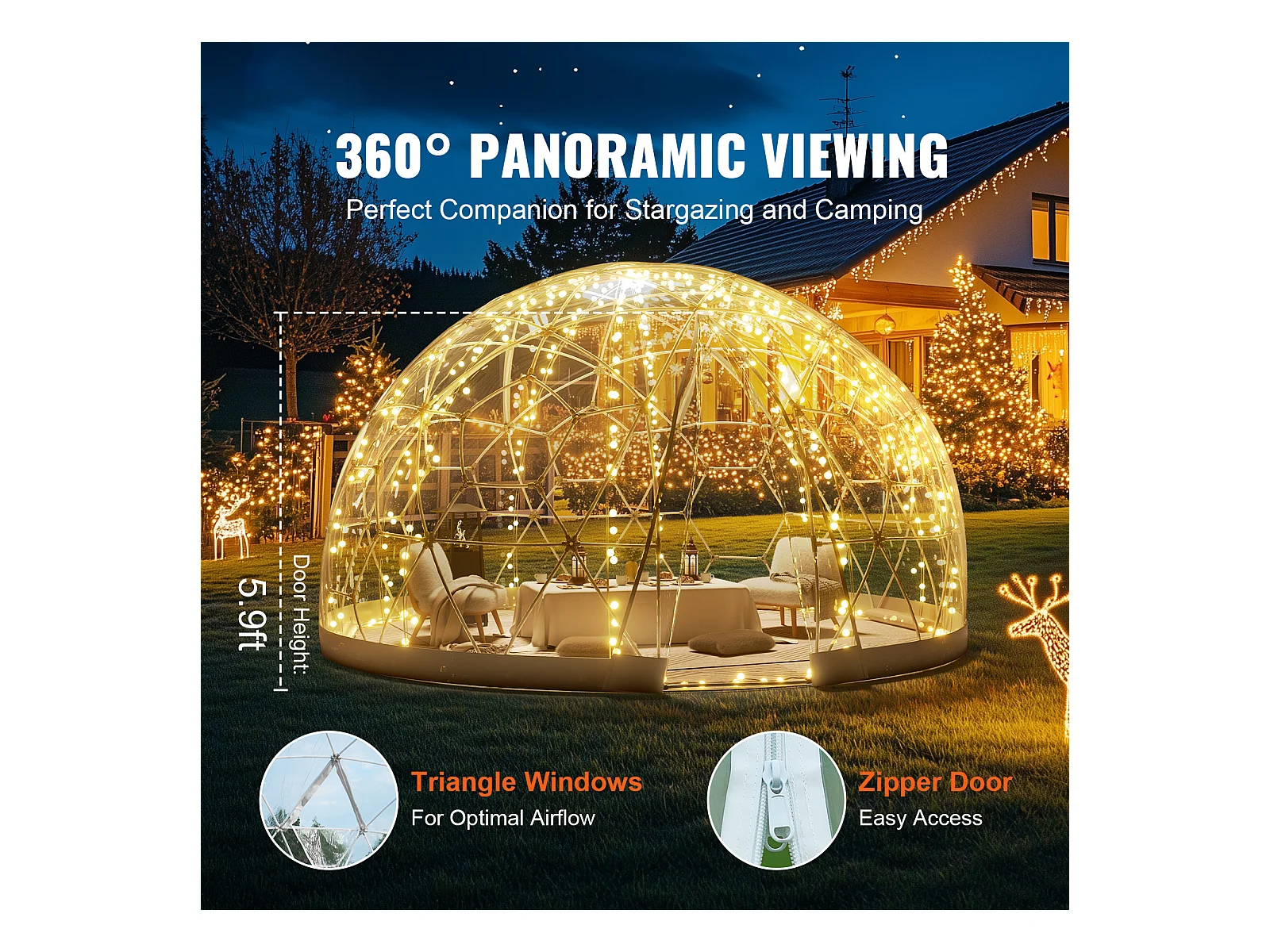 Cúpula de Burbujas SucceBuy de 366cm, Refugio de Campamento Geodésico Exterior, Igloo de Jardín Transparente Impermeable con Ventana, Perfecto para Terraza