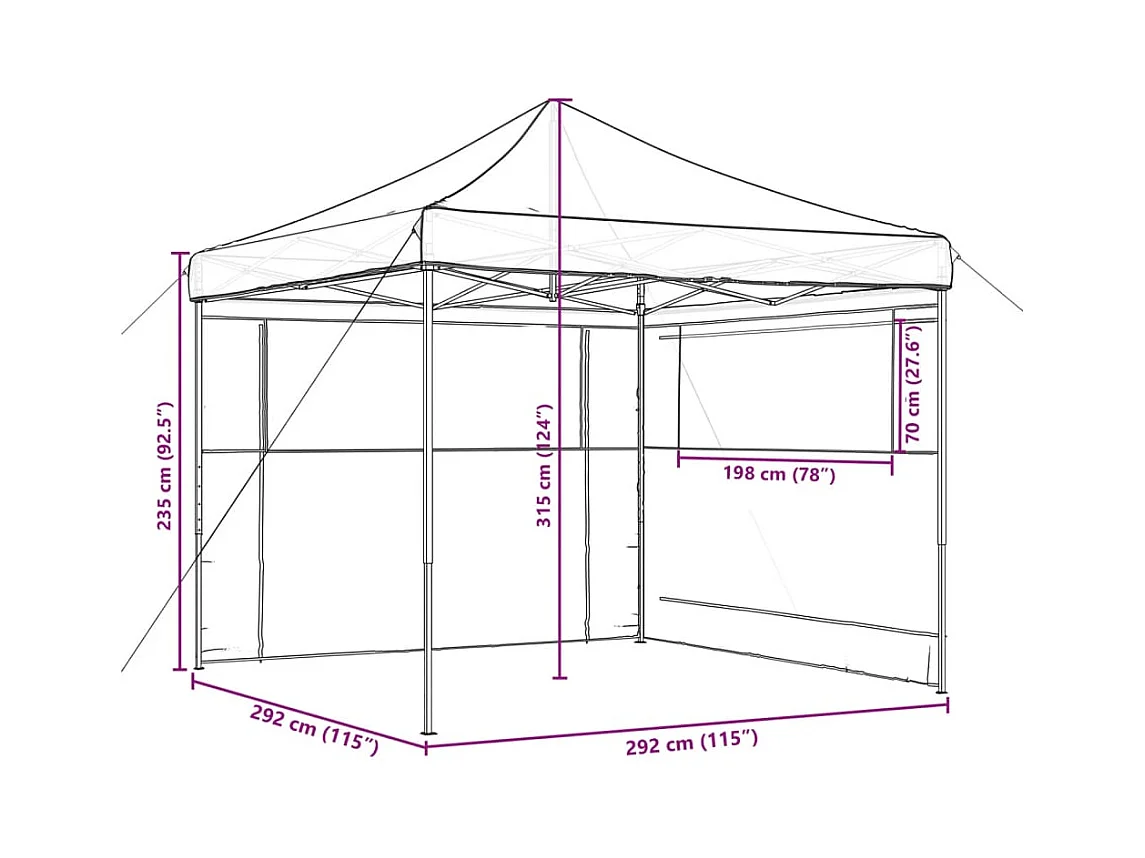 Tienda de fiesta plegable Pop-Up 2 paredes laterales terracota