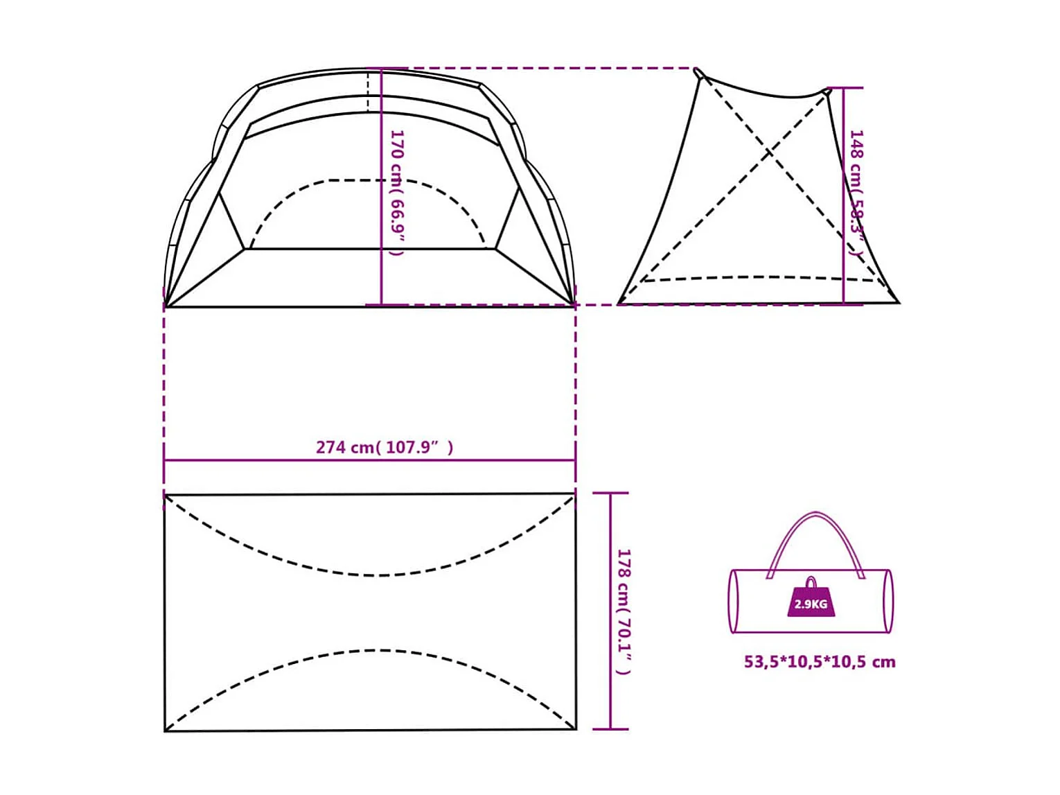 Tienda de playa Taiffa tafetán verde 170-148x274x178 cm