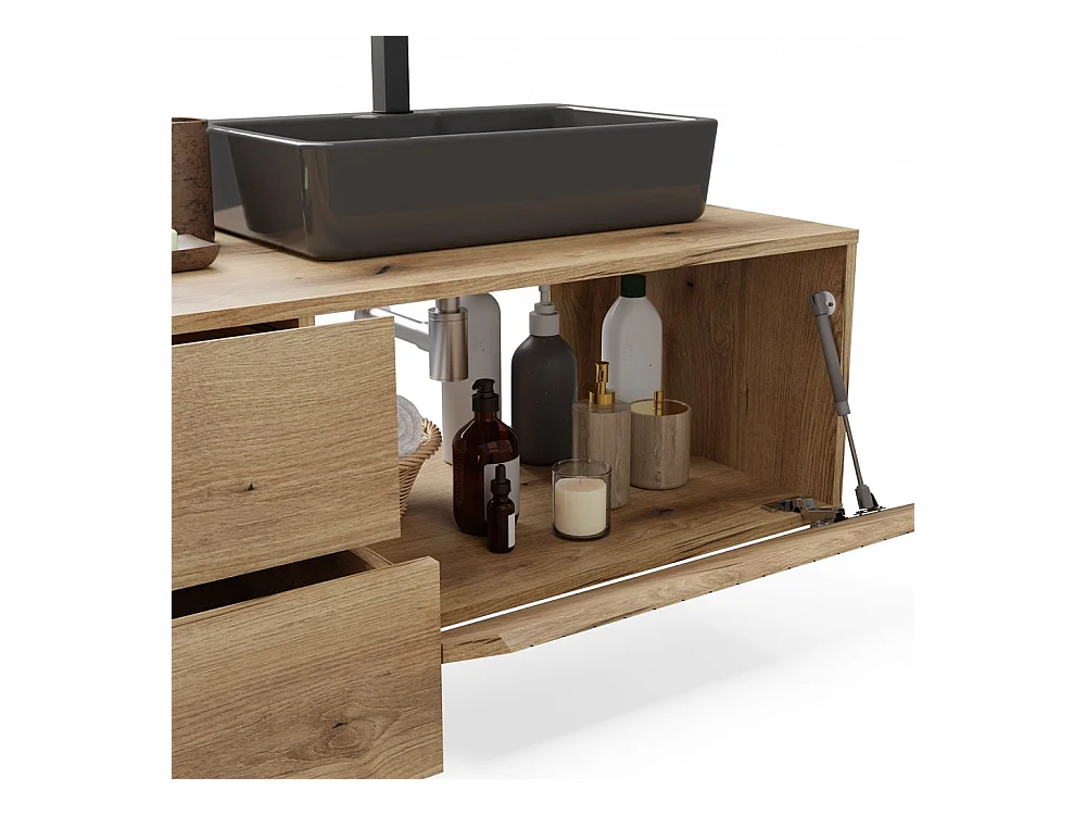 TIGO - mueble de baño colgante estantería roble con frente acanalado