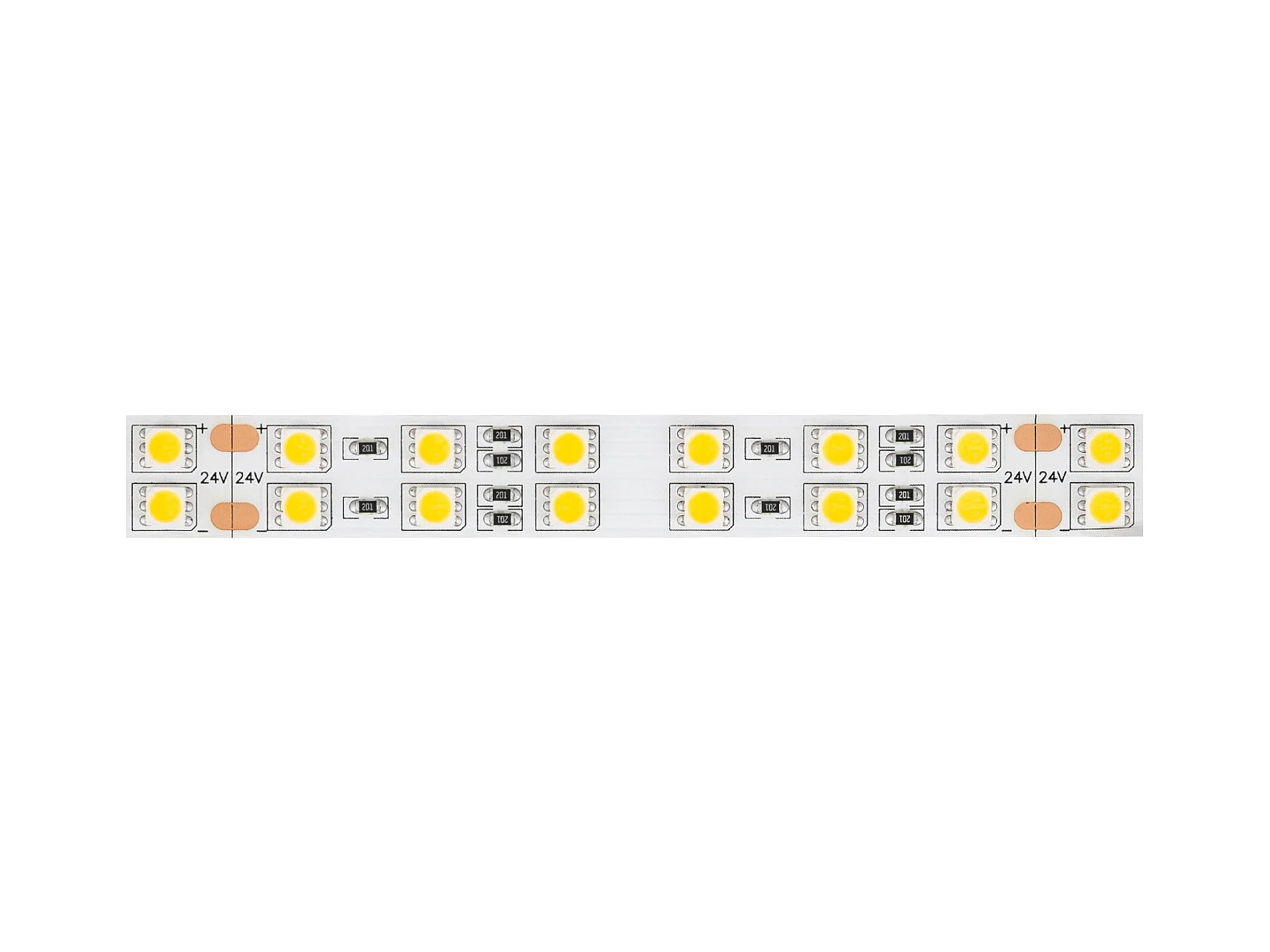 Tira LED 24V SMD 120 LED/m 5m 17W/m 2640lm/m Doble Ancho 15mm Corte 10cm IP20 3000K Blanco Cálido
