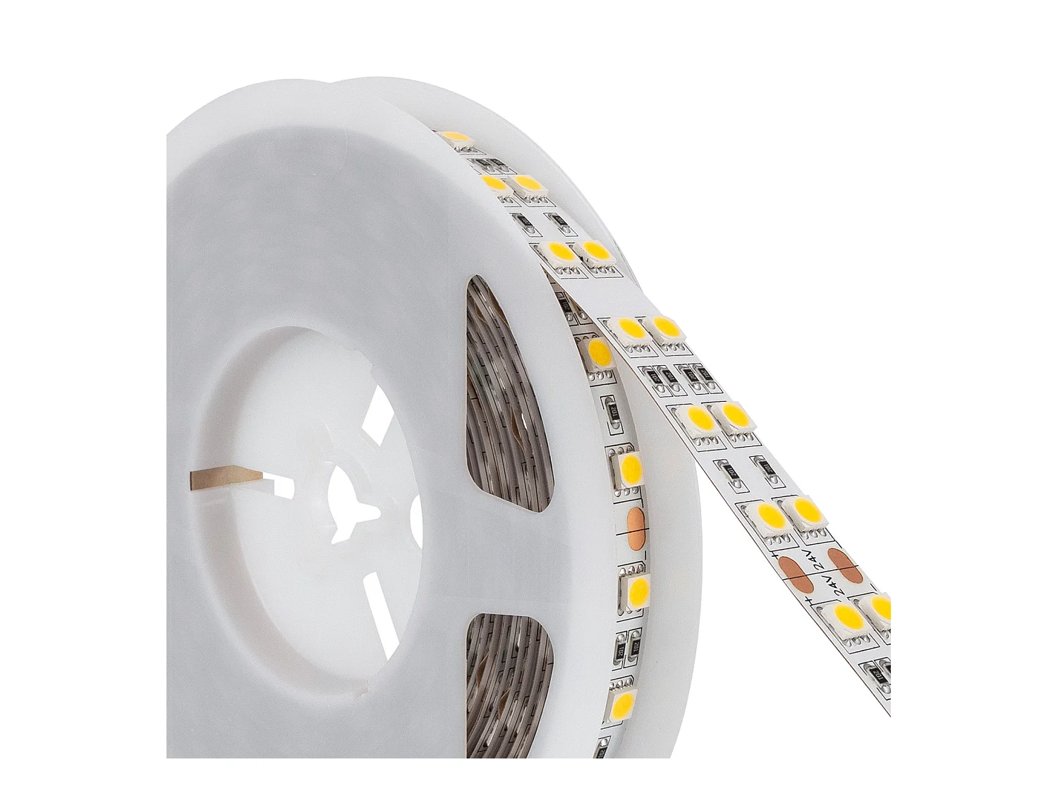 Tira LED 24V SMD 60 LED/m 5m 5W/m 500lm/m Ancho 8mm Corte 10cm IP20 2200K Súper Cálido