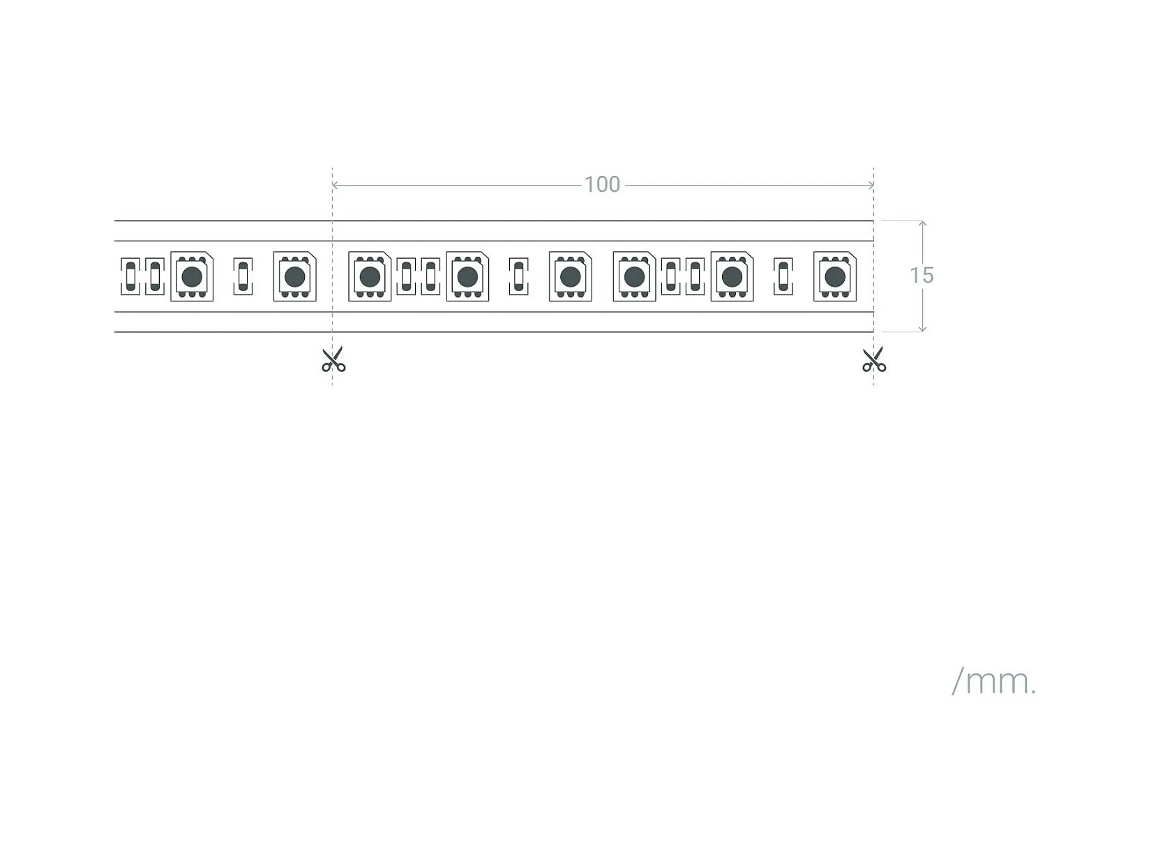 Tira LED 12V SMD ZIG ZAG 60 LED/m 5m 7W/m 700lm/m Ancho 6mm Corte 5cm IP20 2700K Blanco Cálido