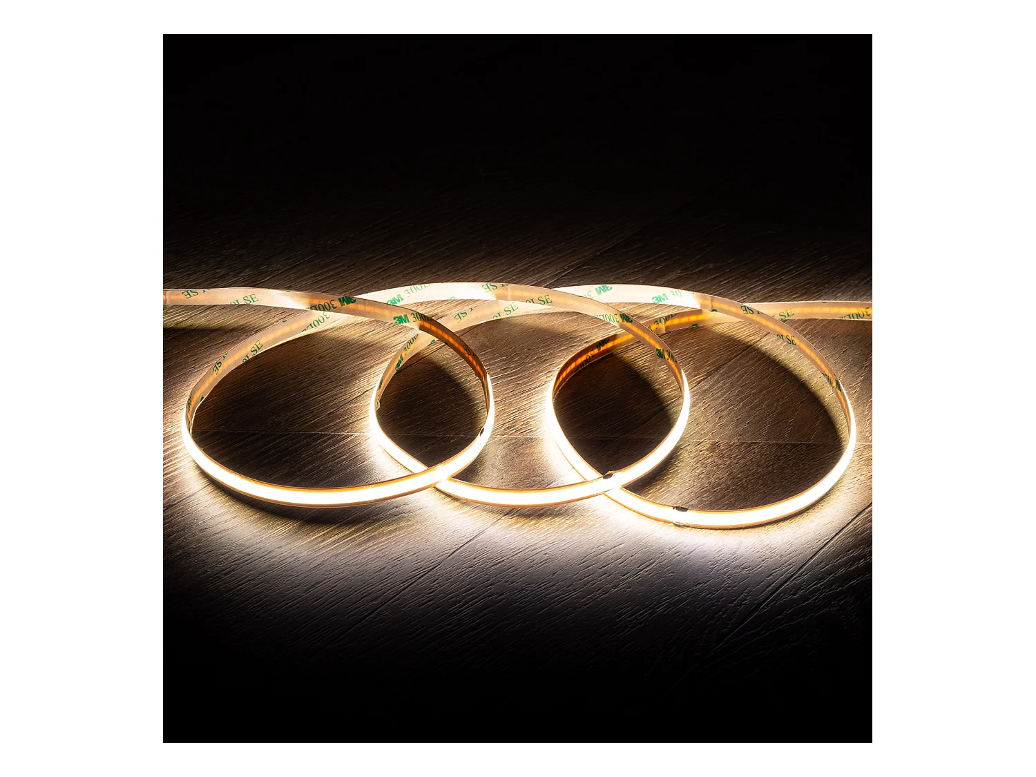 Tira LED 24V COB 320 LED/m 5m 10W/m 1000lm/m Ancho 8mm Corte 5cm IP20 CRI90 2200K Súper Cálido