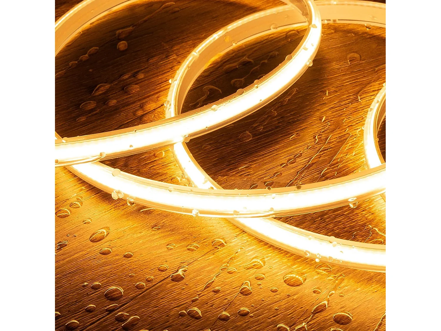 Tira LED Regulable 220V COB Autorrectificada 320 LED/m 8W/m 720 lm/m Ancho 12mm Corte 50cm IP65 CRI90 a Medida 2200K Súper Cálido 25 m