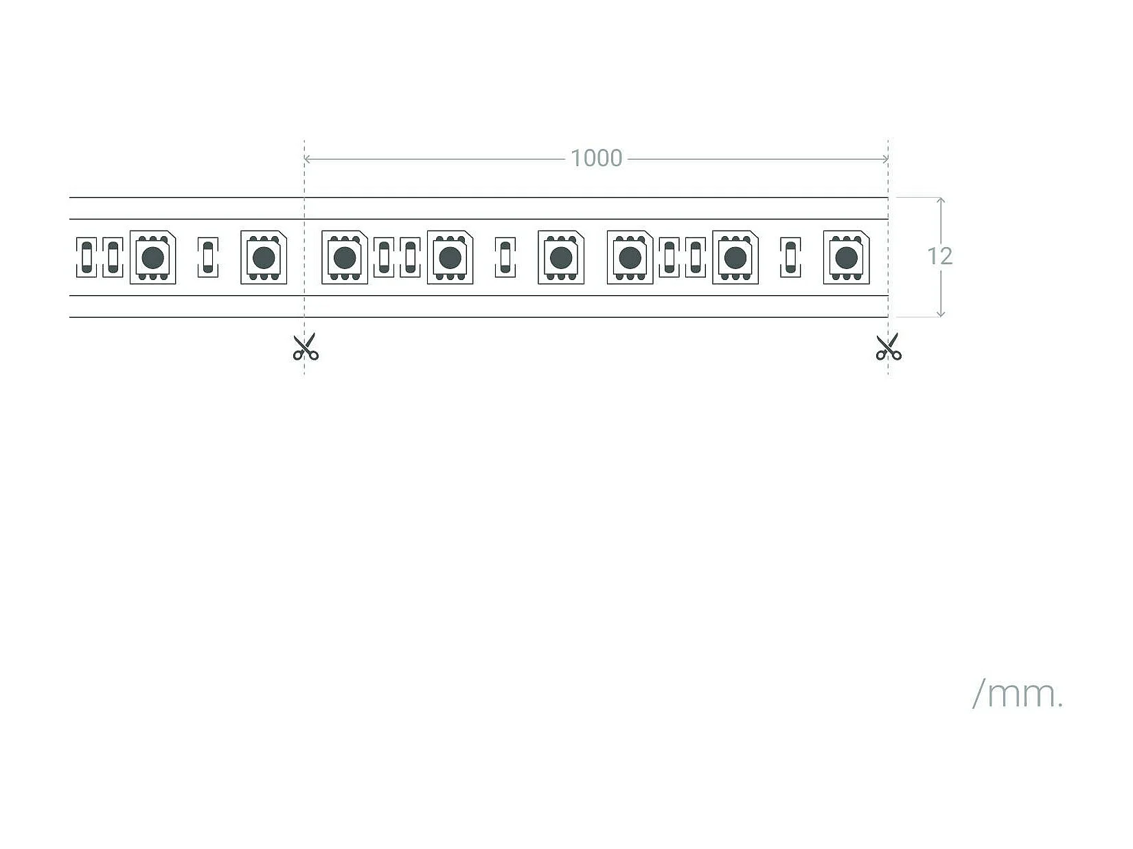 Tira LED 24V RGBW SMD 60LED/m 5m 12W/m Ancho 12mm Corte 10cm IP20 RGBW