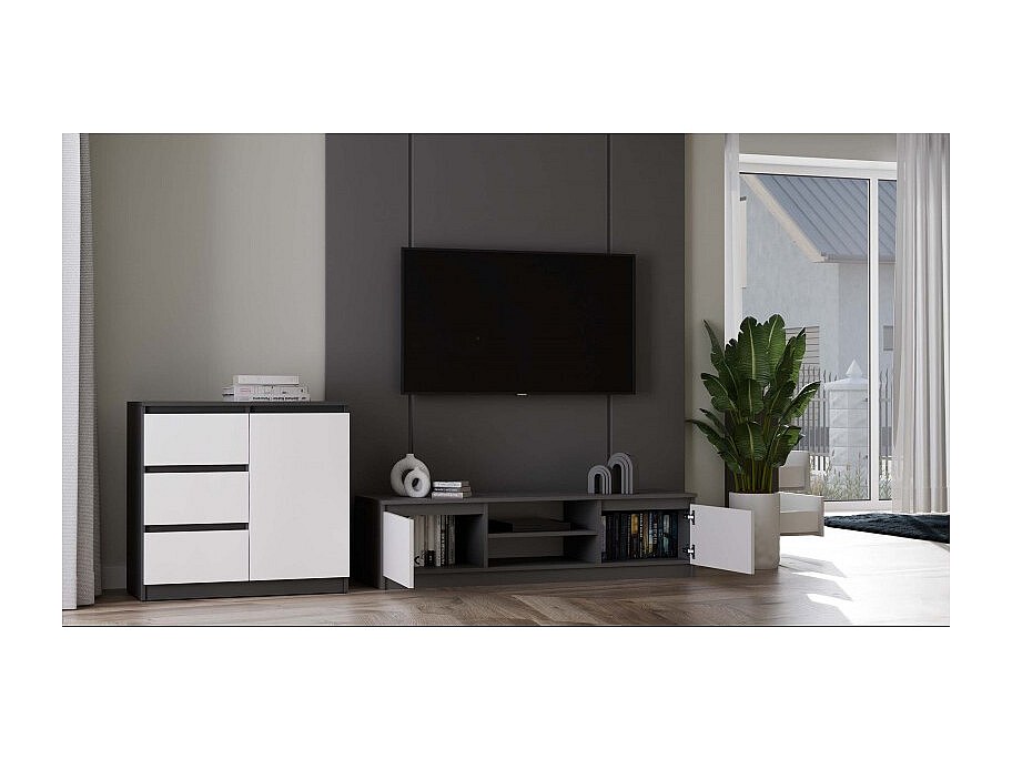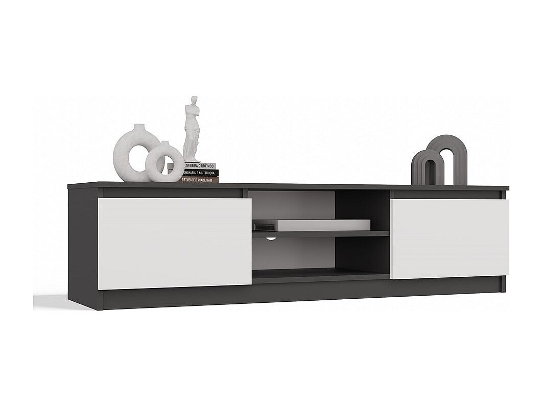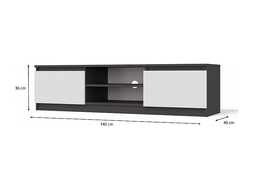 TIVOLI - Mueble TV de estilo moderno - 140 x 40 x 36 cm - 2 nichos + 2 puertas - Antracita y blanco