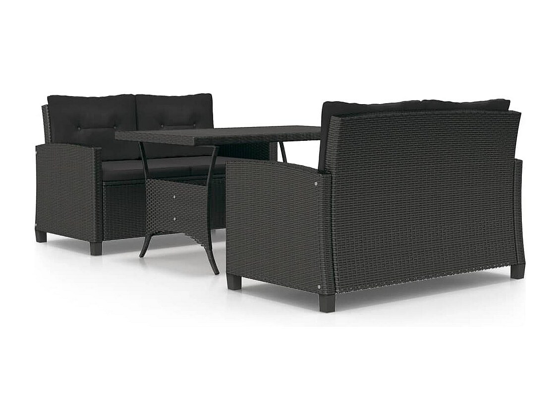 Eglantine Juego de comedor para jardín 3 piezas ratán sintético negro