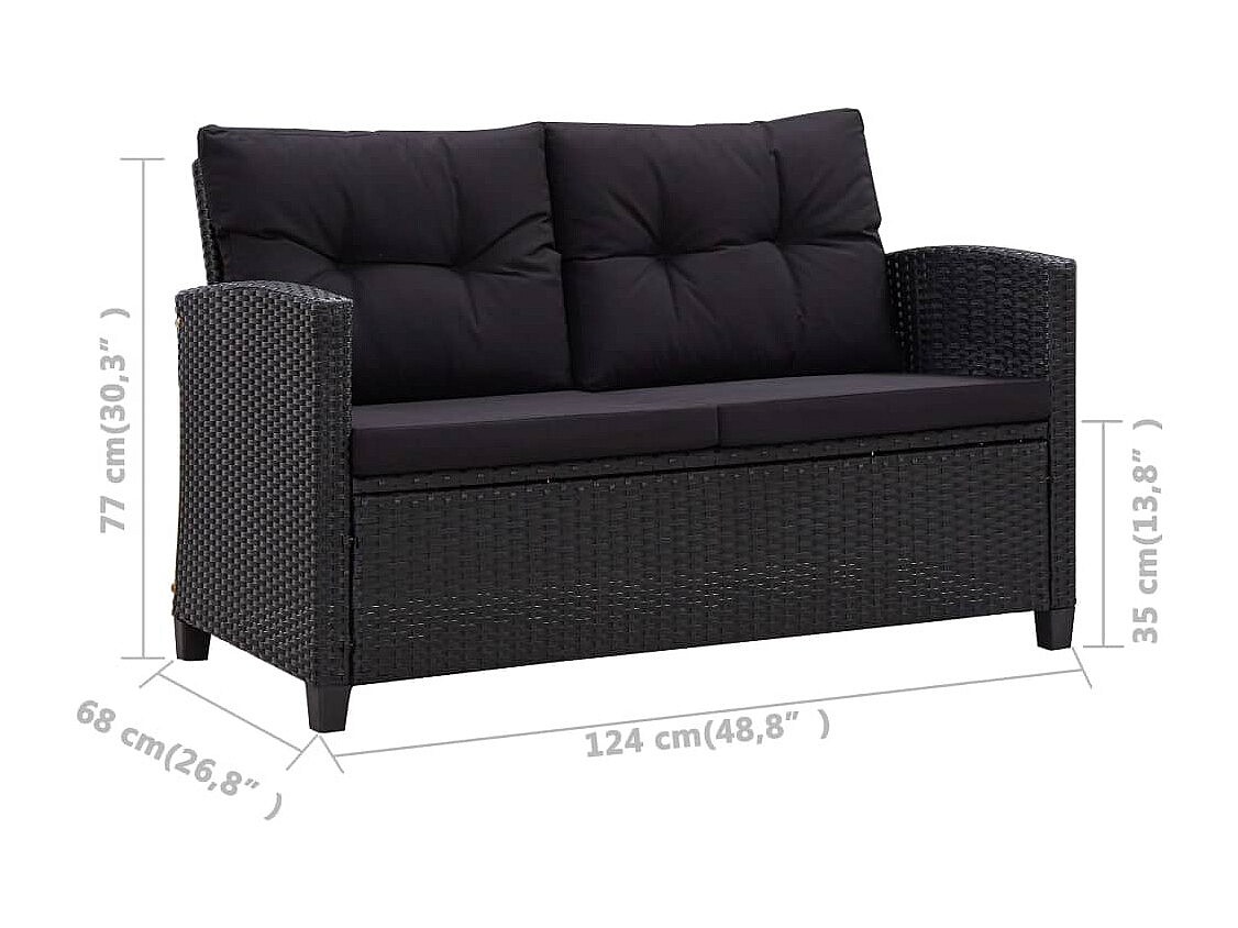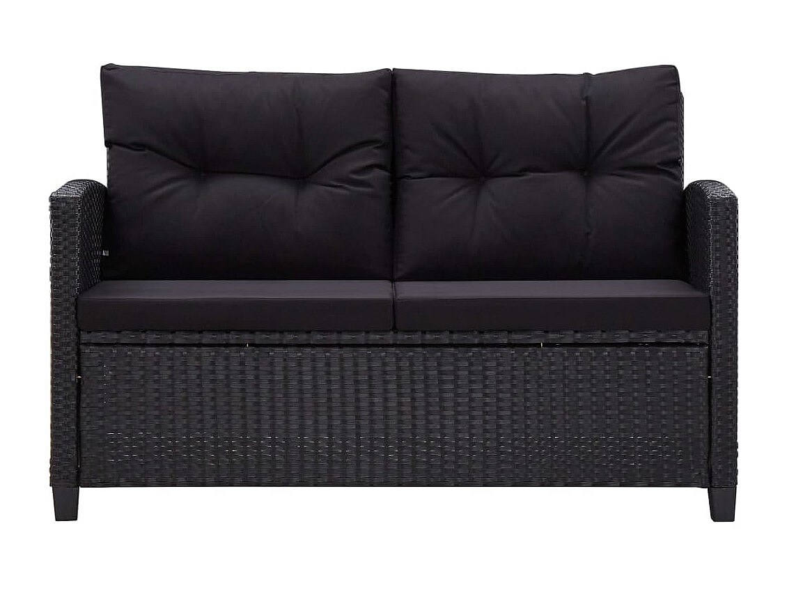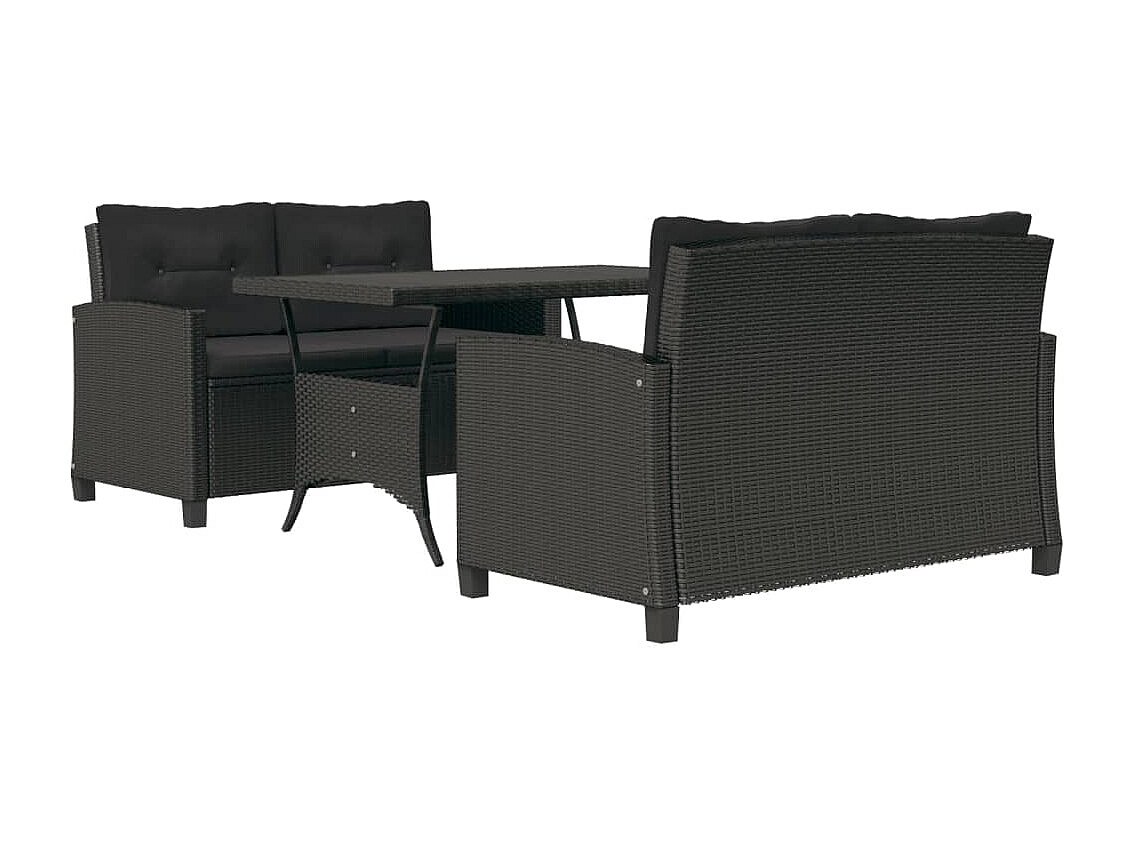 Afragola Set comedor de jardín 3 pzas con cojines ratán sintético negro