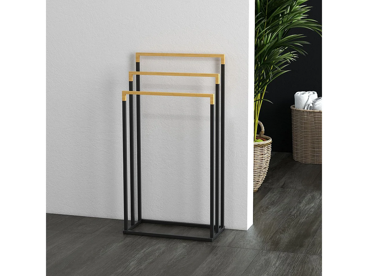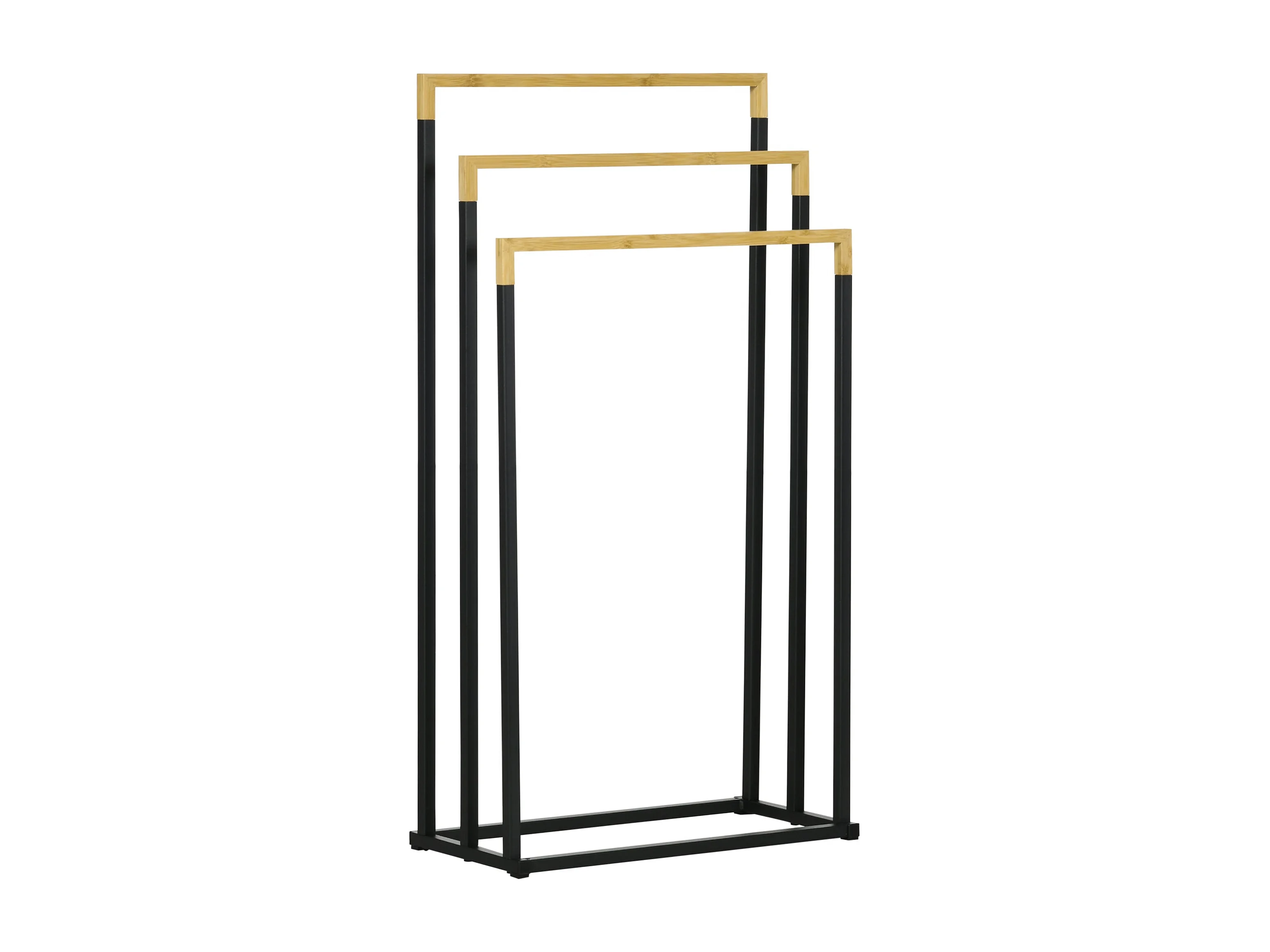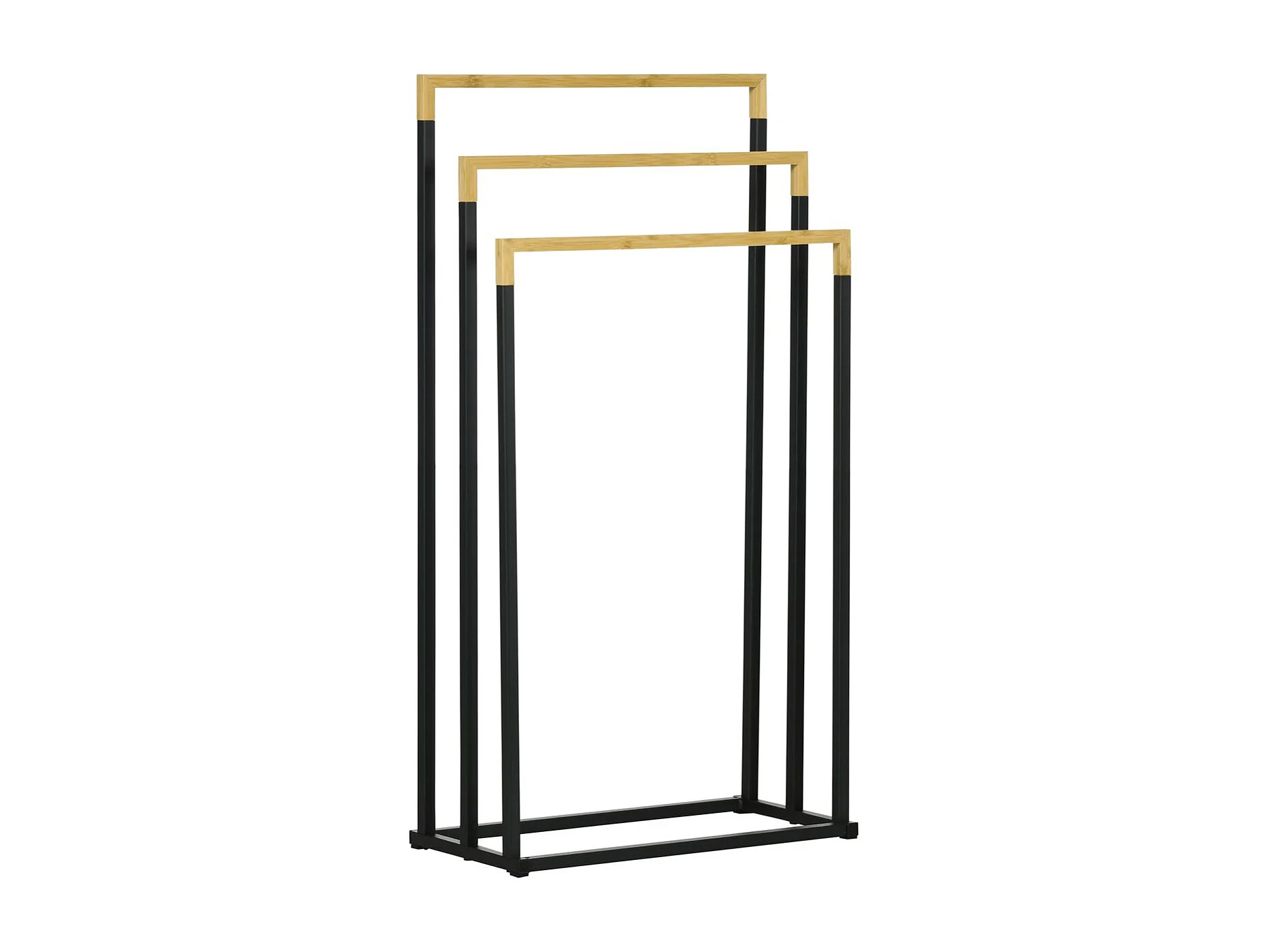 Toallero de pie Nikita Kleankin 3 barras negro/natural 86x45x22,5 cm