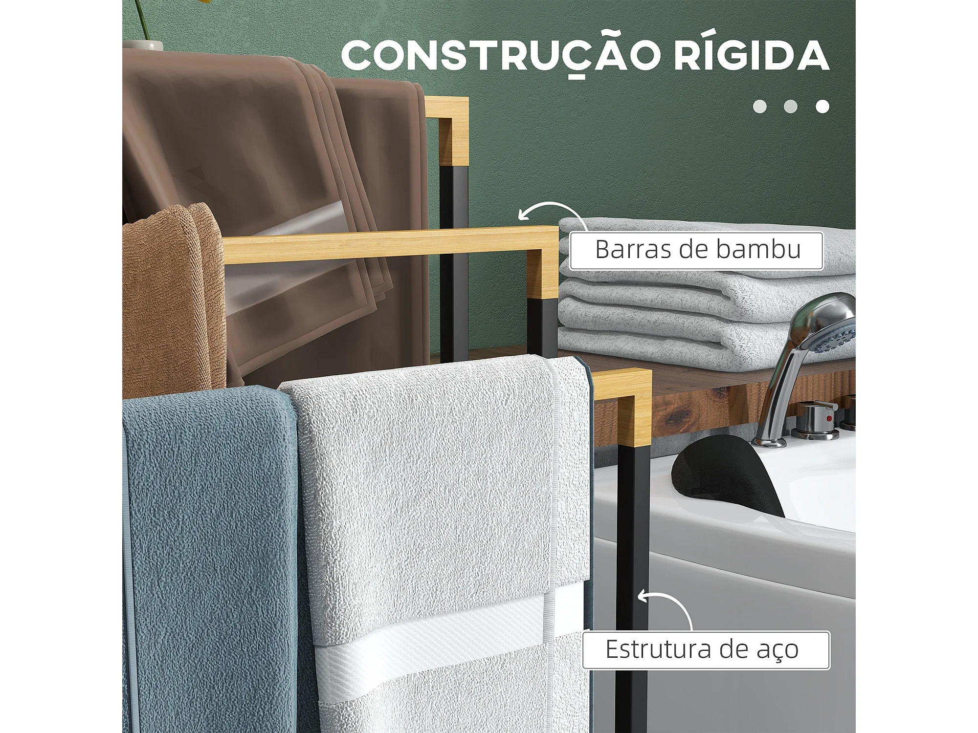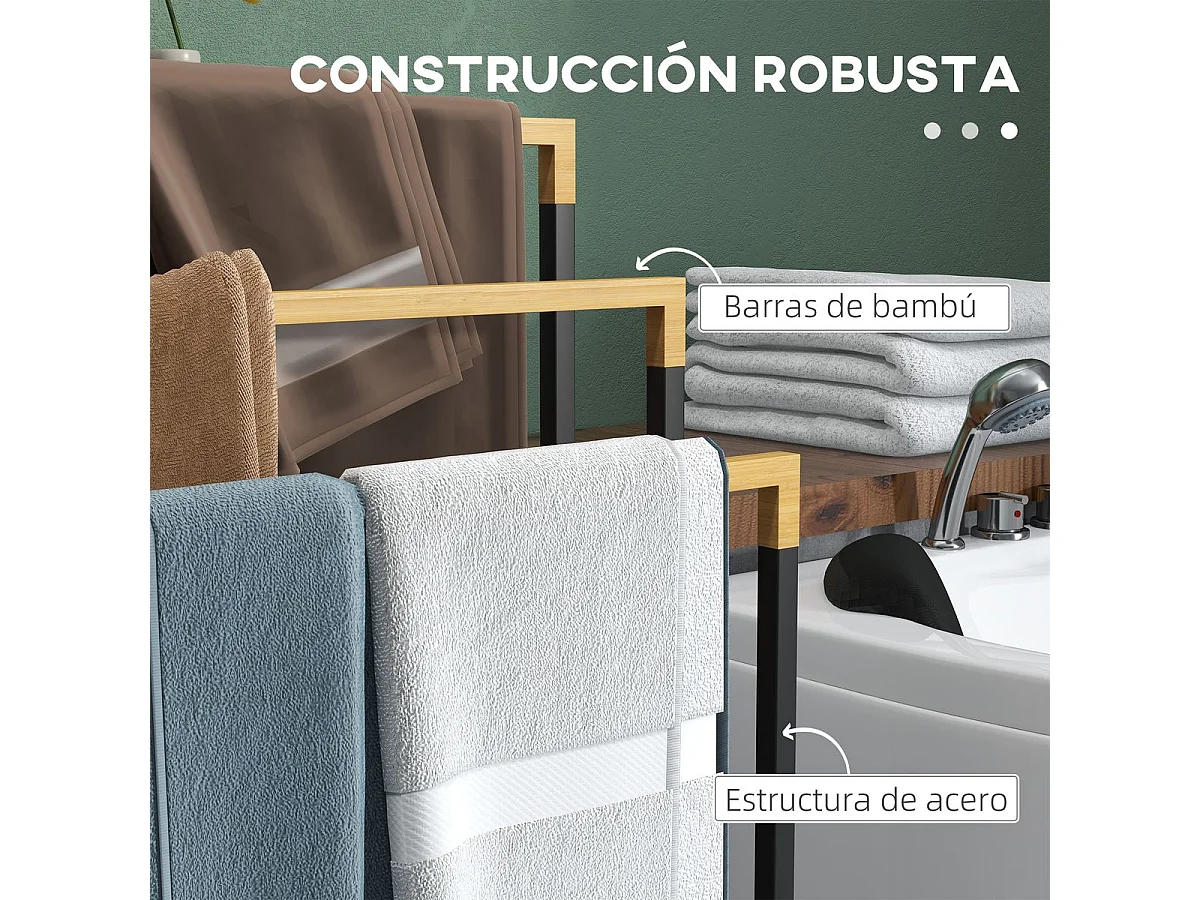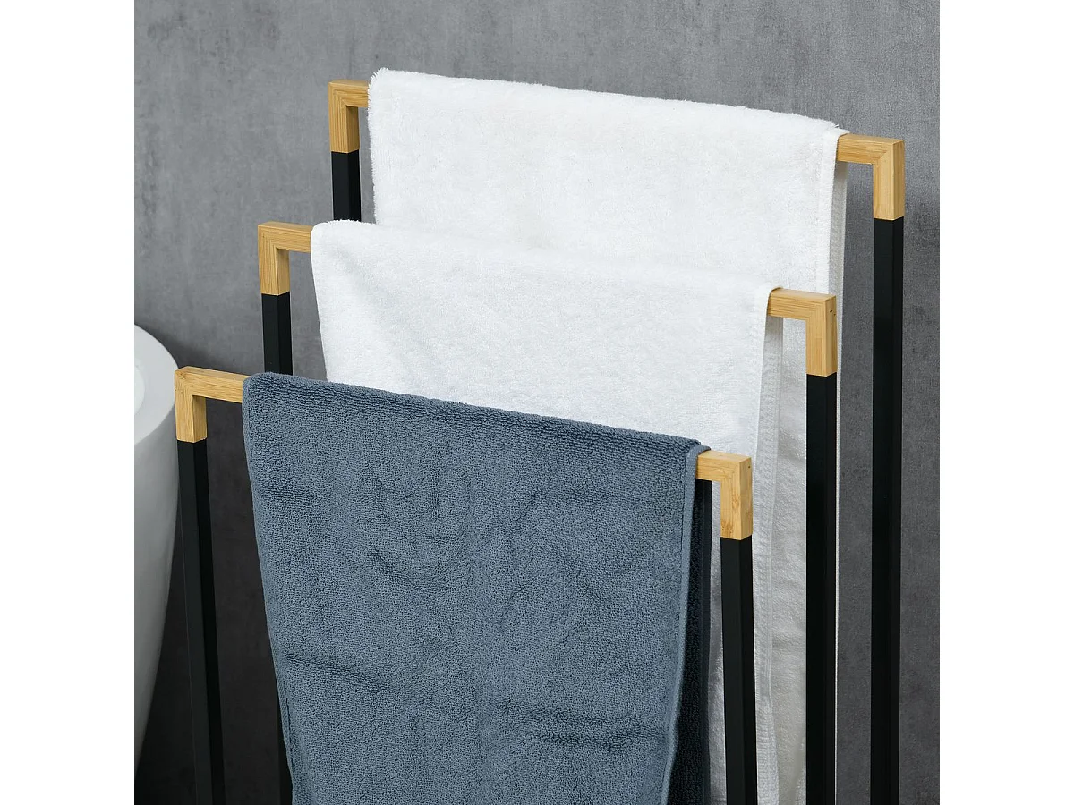 Toallero de pie Nikita Kleankin 3 barras negro/natural 86x45x22,5 cm