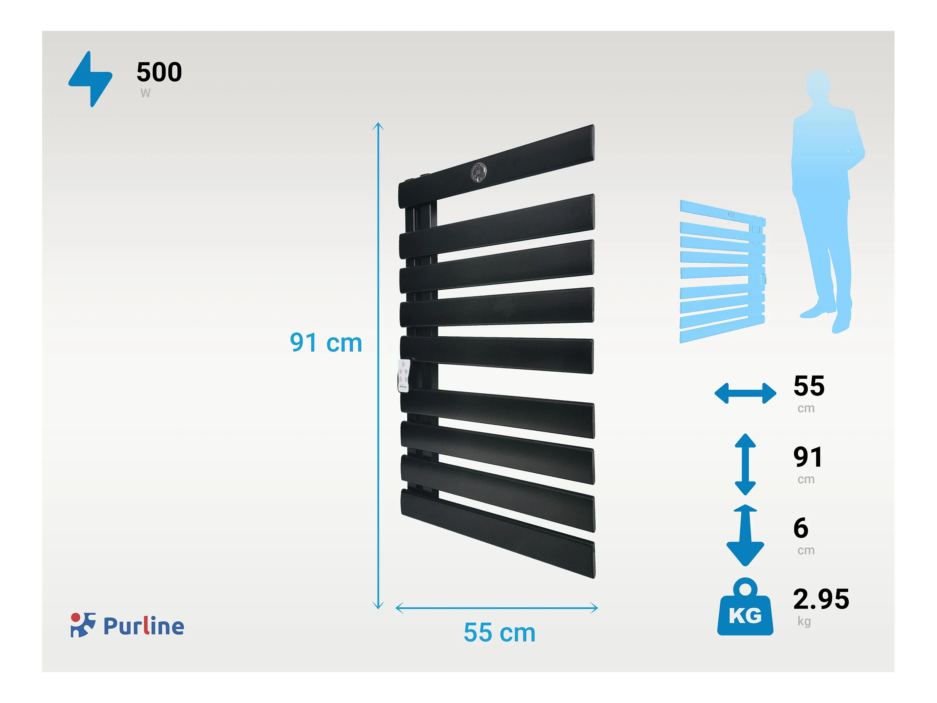 Radiador toallero eléctrico negro mate 600x1000 mm con elemento calefactor 300W