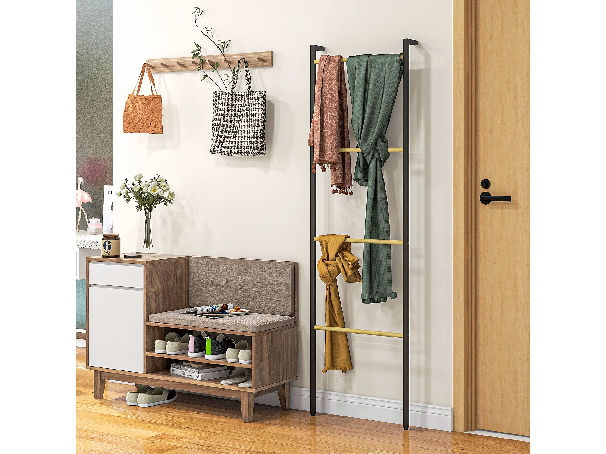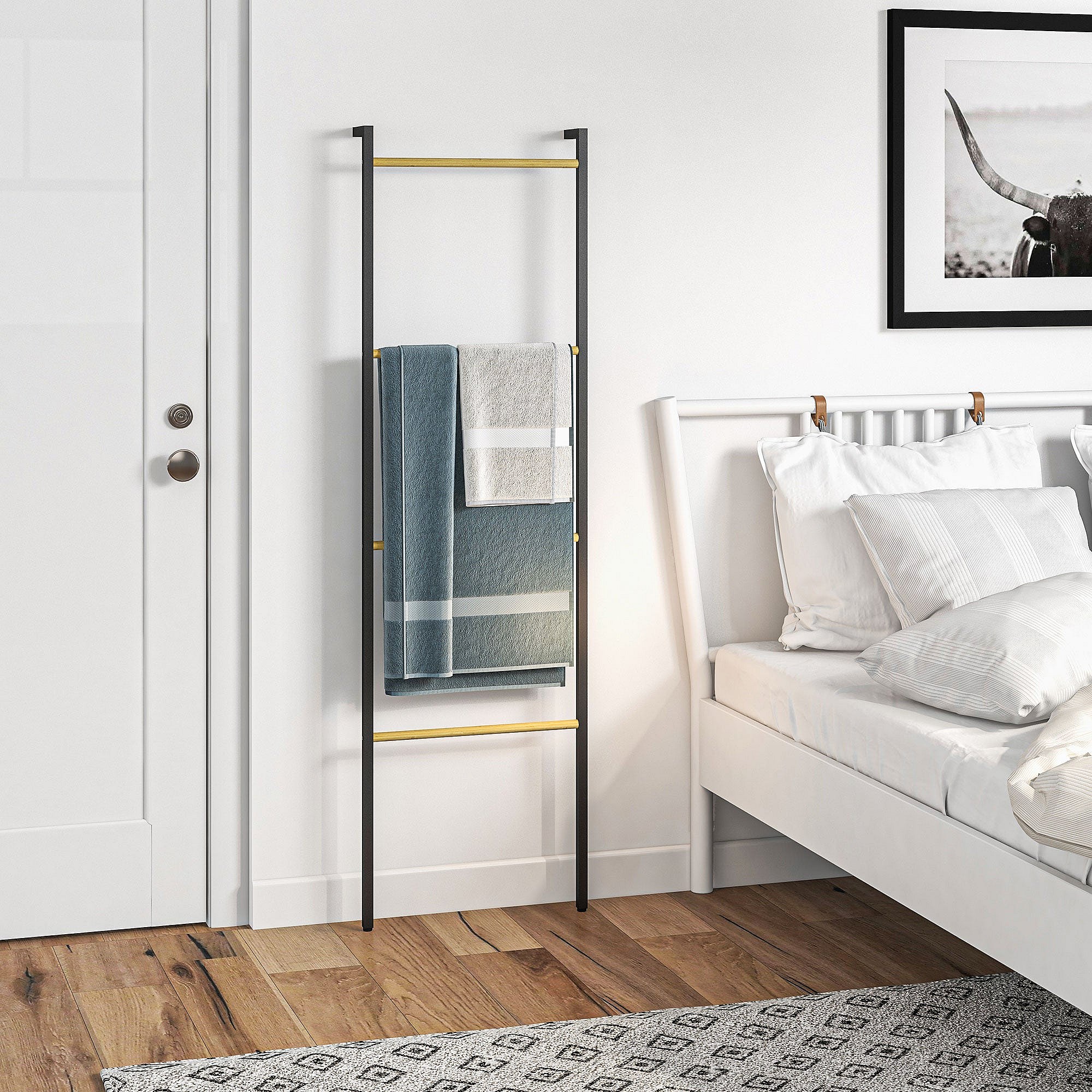 Toallero Ginebra Homcom 4 niveles escalonado bambú y madera negro 167,5x49x5,5 cm