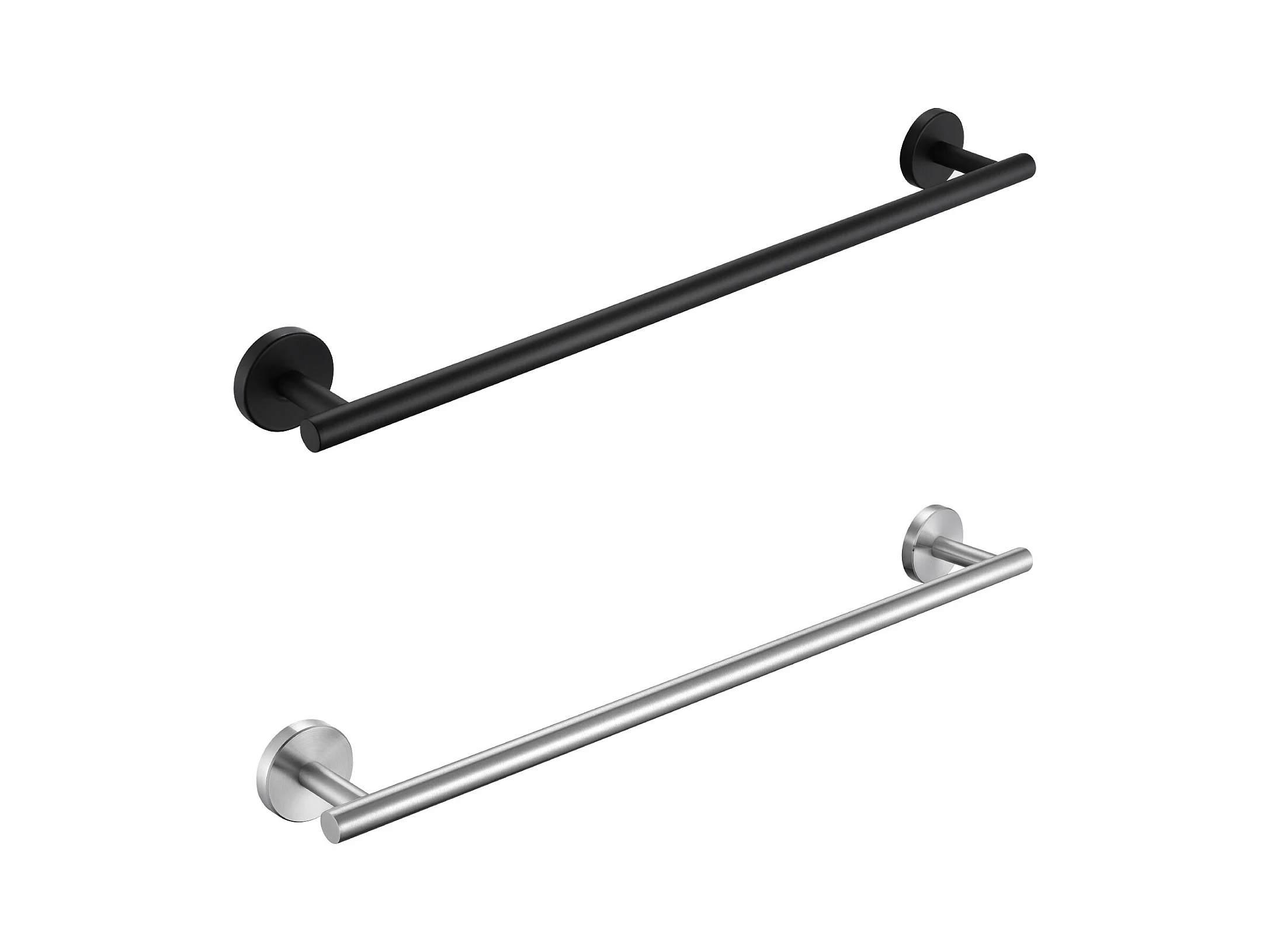 Toallero multifuncional de acero inoxidable de 2 piezas, toallero de un solo polo adecuado para baño/servilleta sanitaria (1 pieza negro, 1 pieza cepillado)