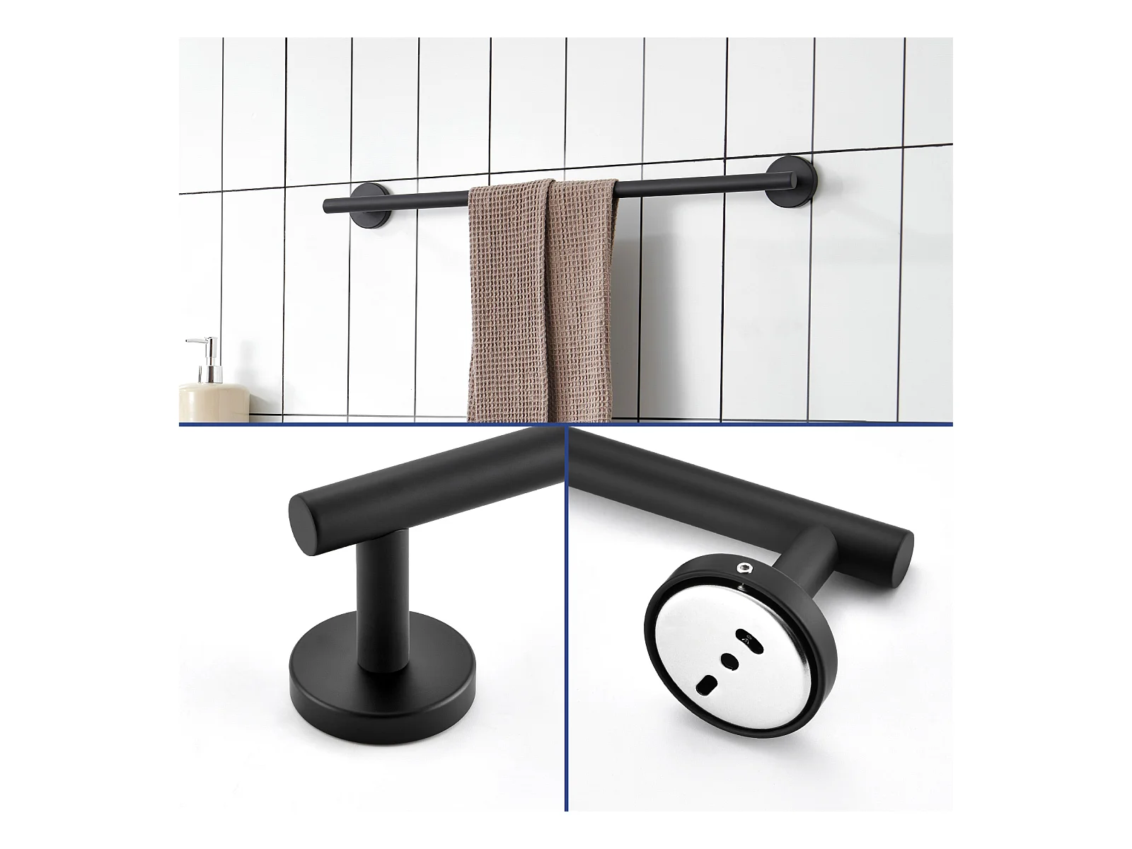 Toallero negro multifuncional de acero inoxidable 304, toallero unipolar adecuado para baño/servilleta sanitaria/cocina