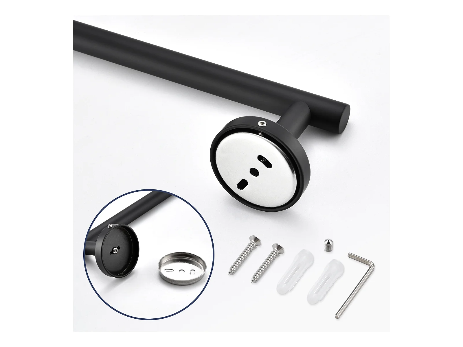 toallero negro + 1 toallero de baño cepillado, toallero de acero inoxidable, toallero de un solo polo adecuado para baño