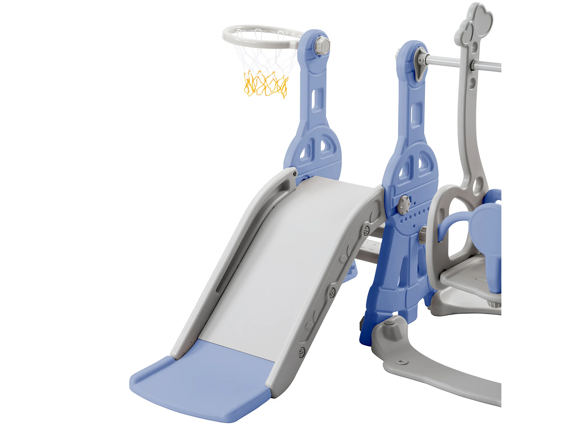 Tobogán 4 en 1 - con escaleras, columpio y canasta de baloncesto - azul