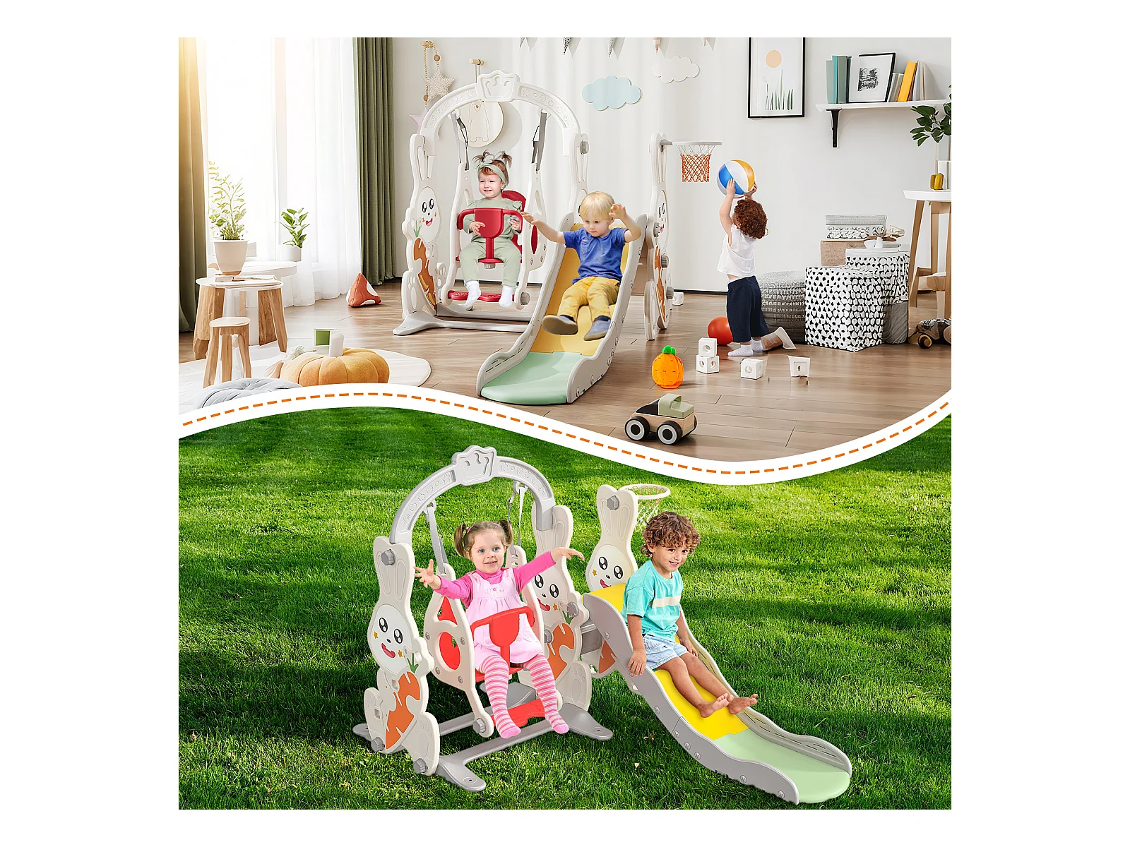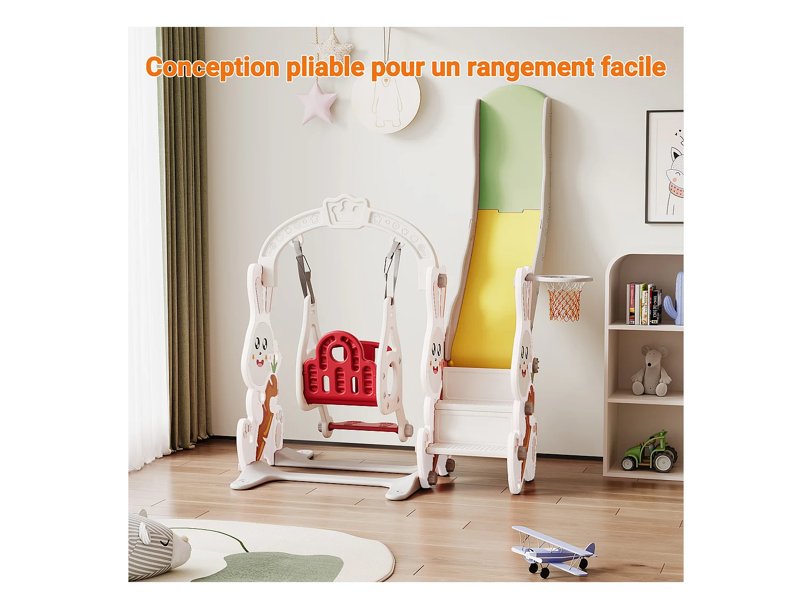 Tobogán + columpio + estructura de pelota para conejos – Blanco