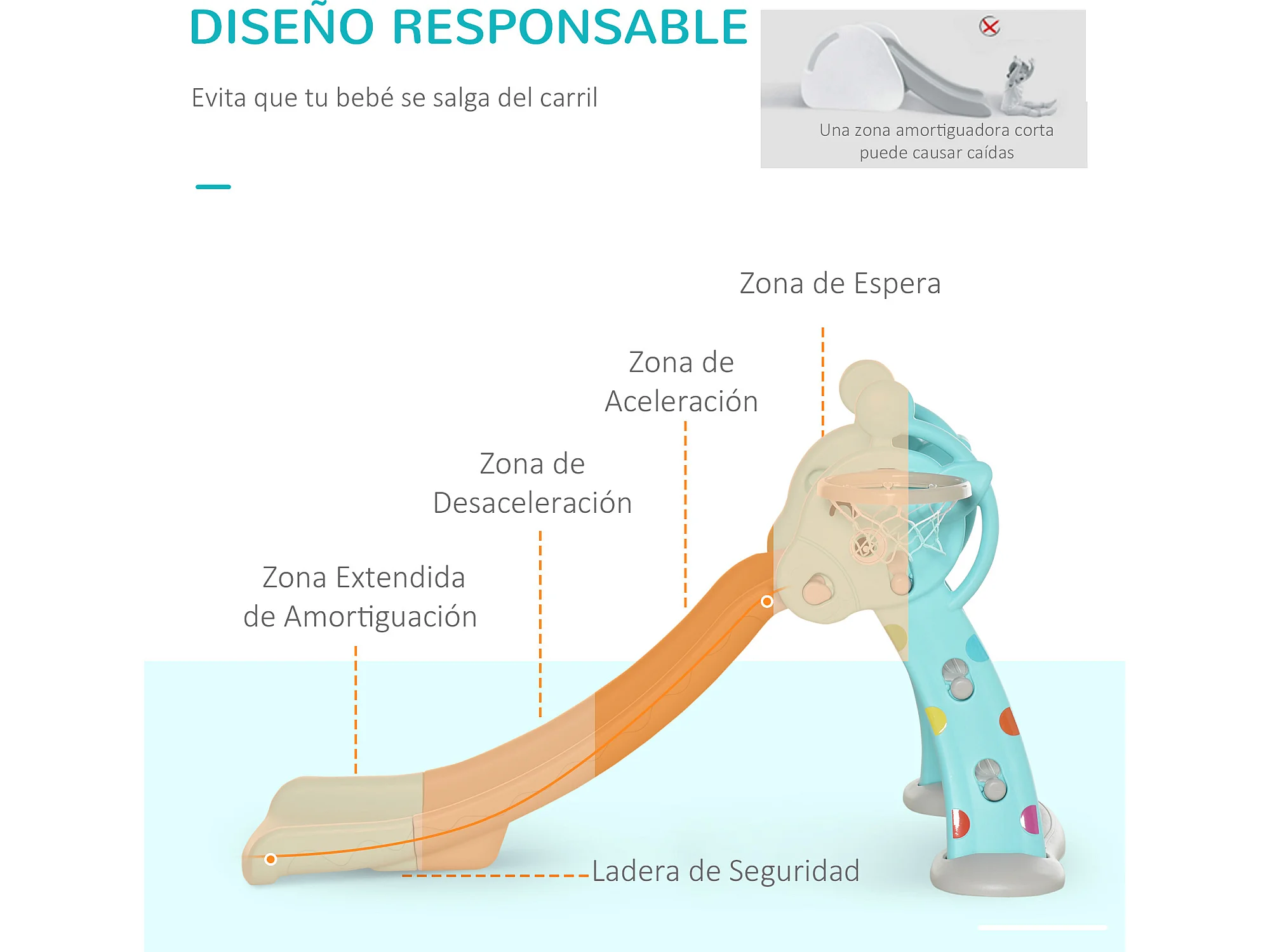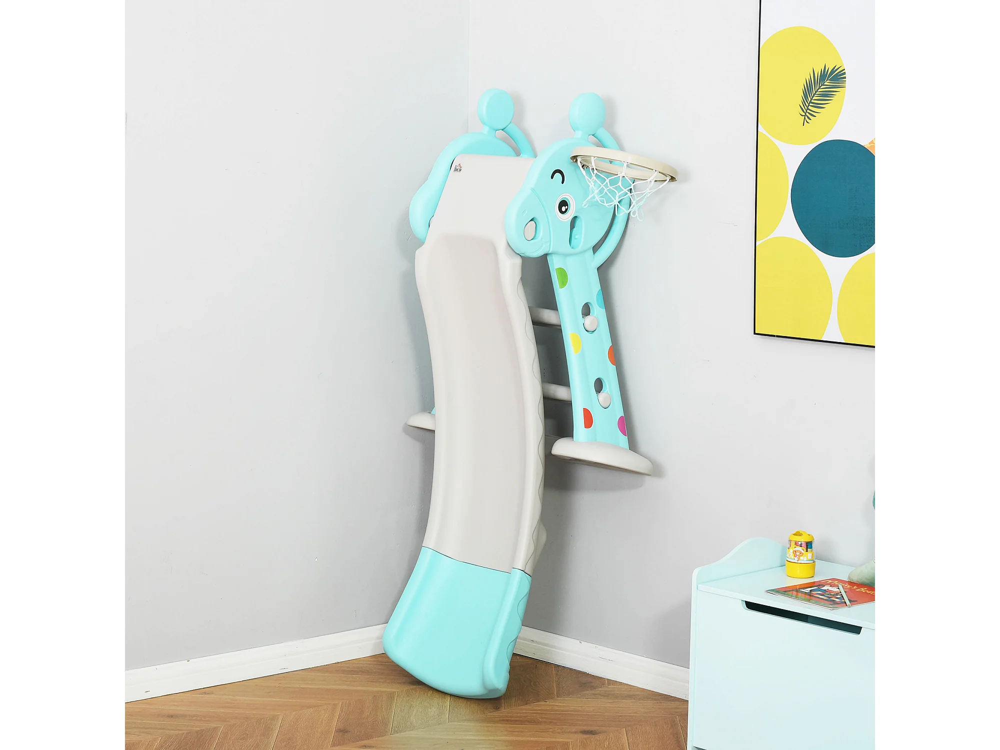 Tobogán infantil 4 en 1 171x110x100 cm en HDPE con aro de baloncesto - Verde