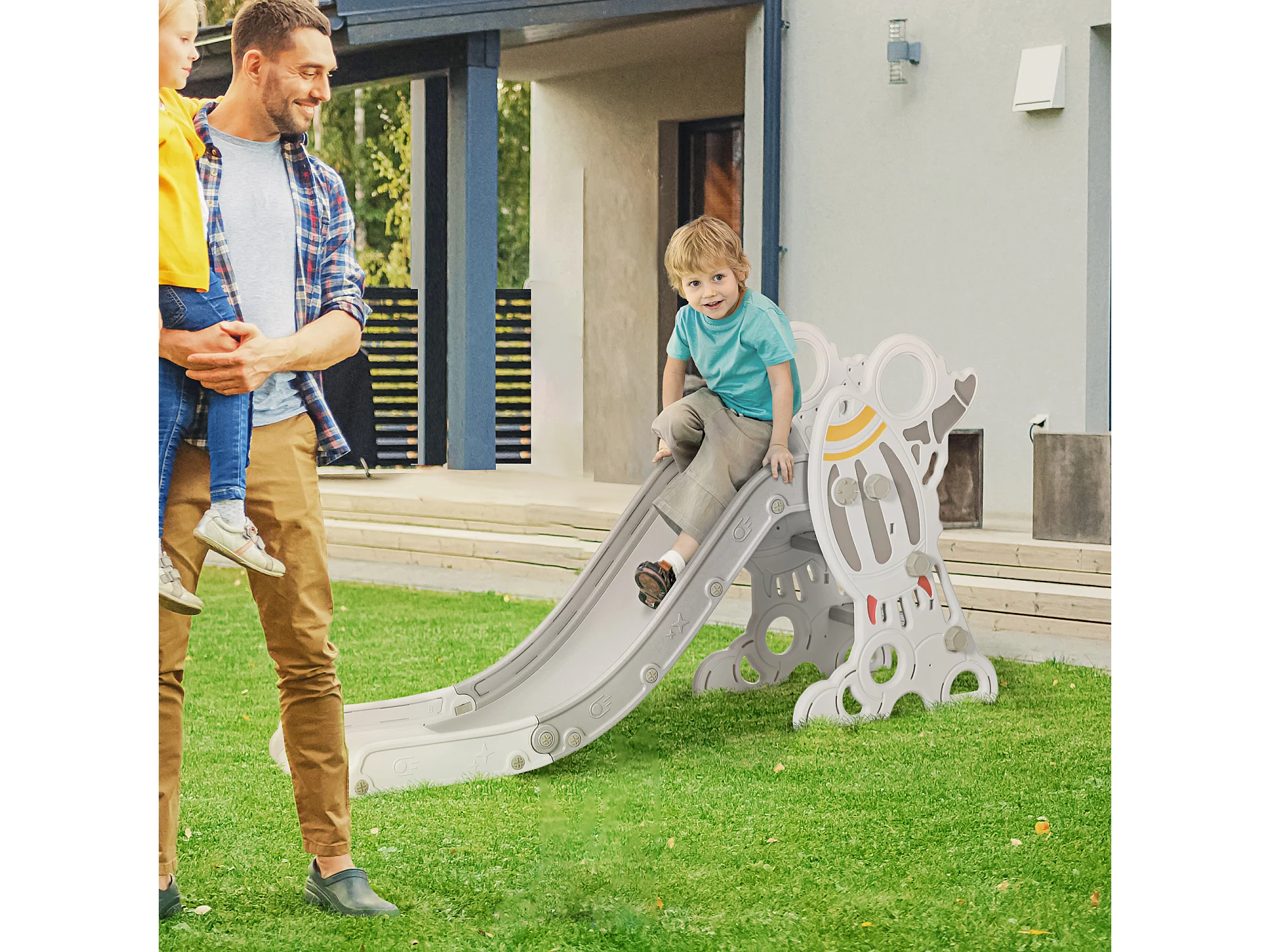 Tobogán infantil 5 en 1 - 179 x 184 x 103 cm - HDPE - Con columpio y espacio de almacenamiento - Gris