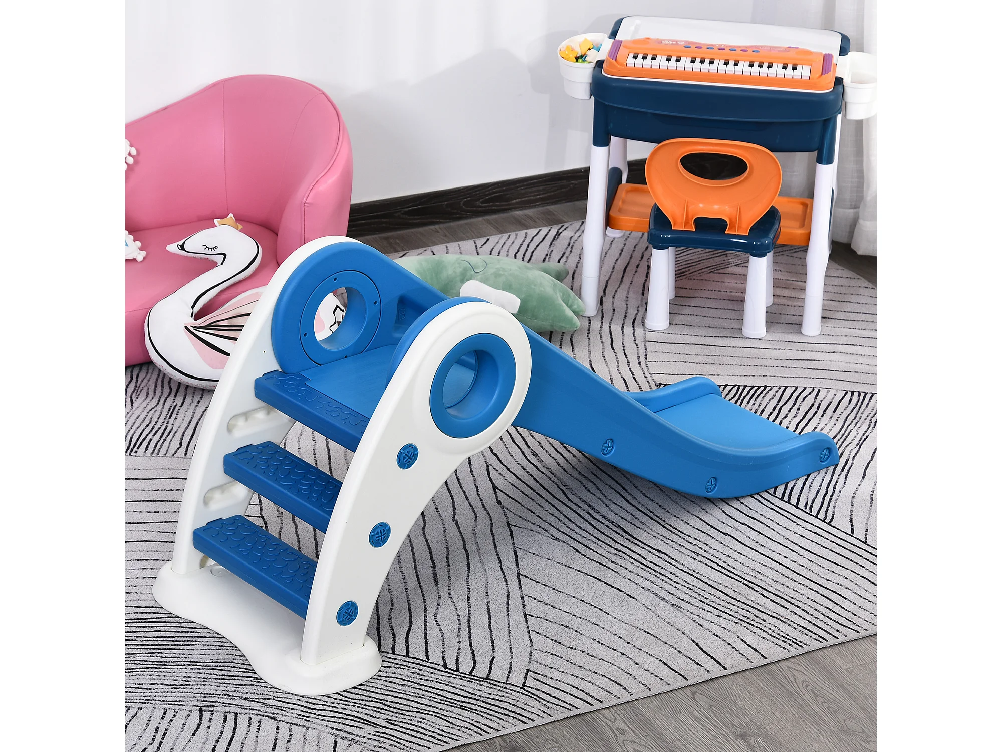 Tobogán infantil con columpio azul, blanco, rosa y amarillo 150x190x100 cm HOMCOM