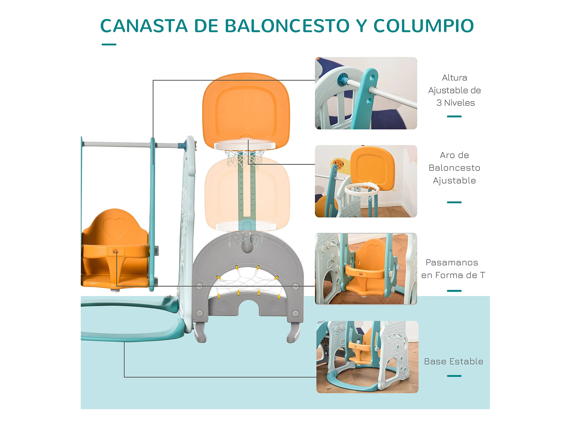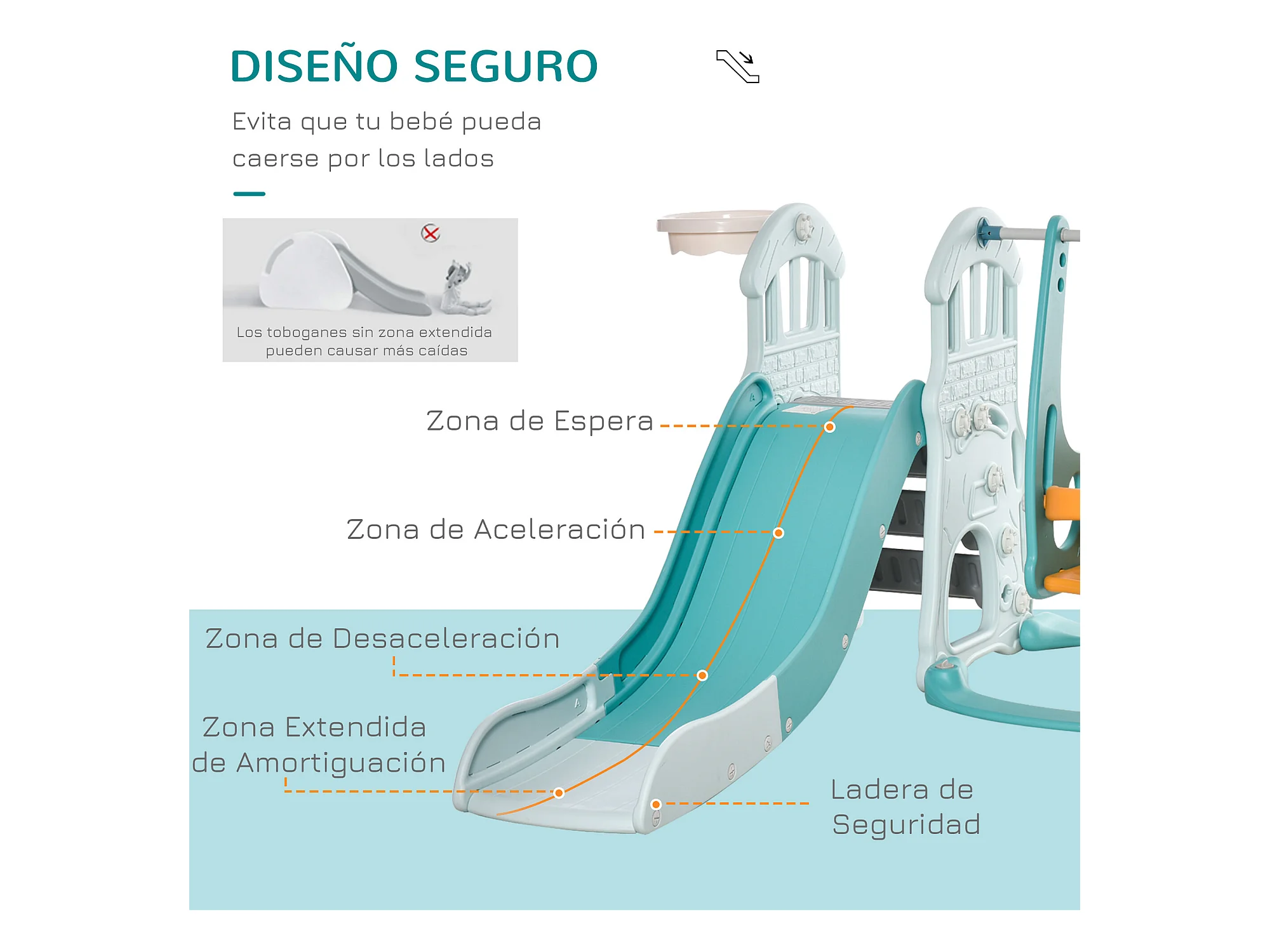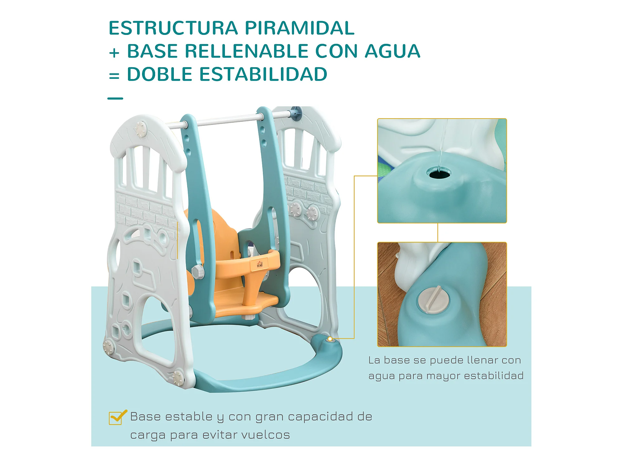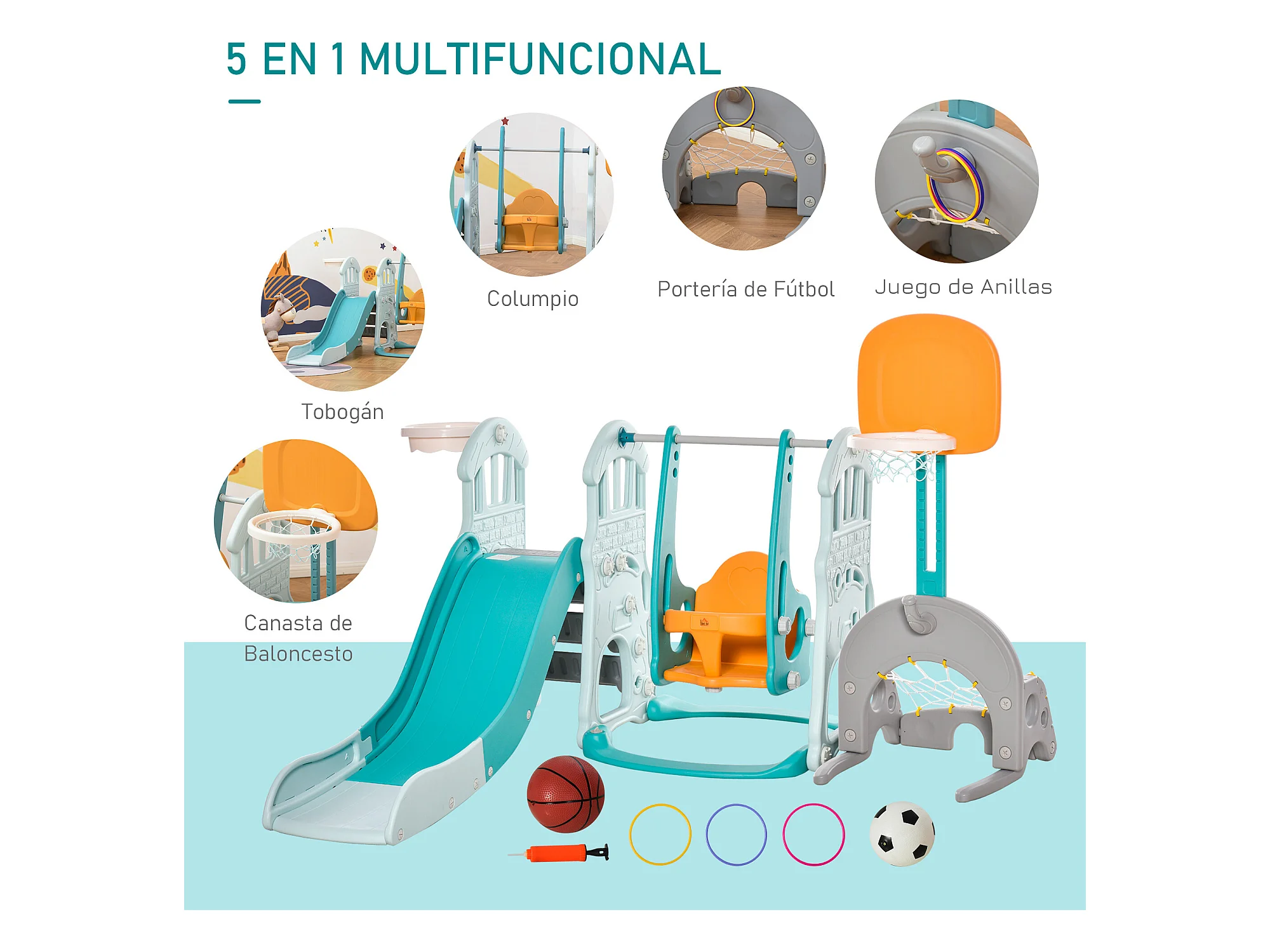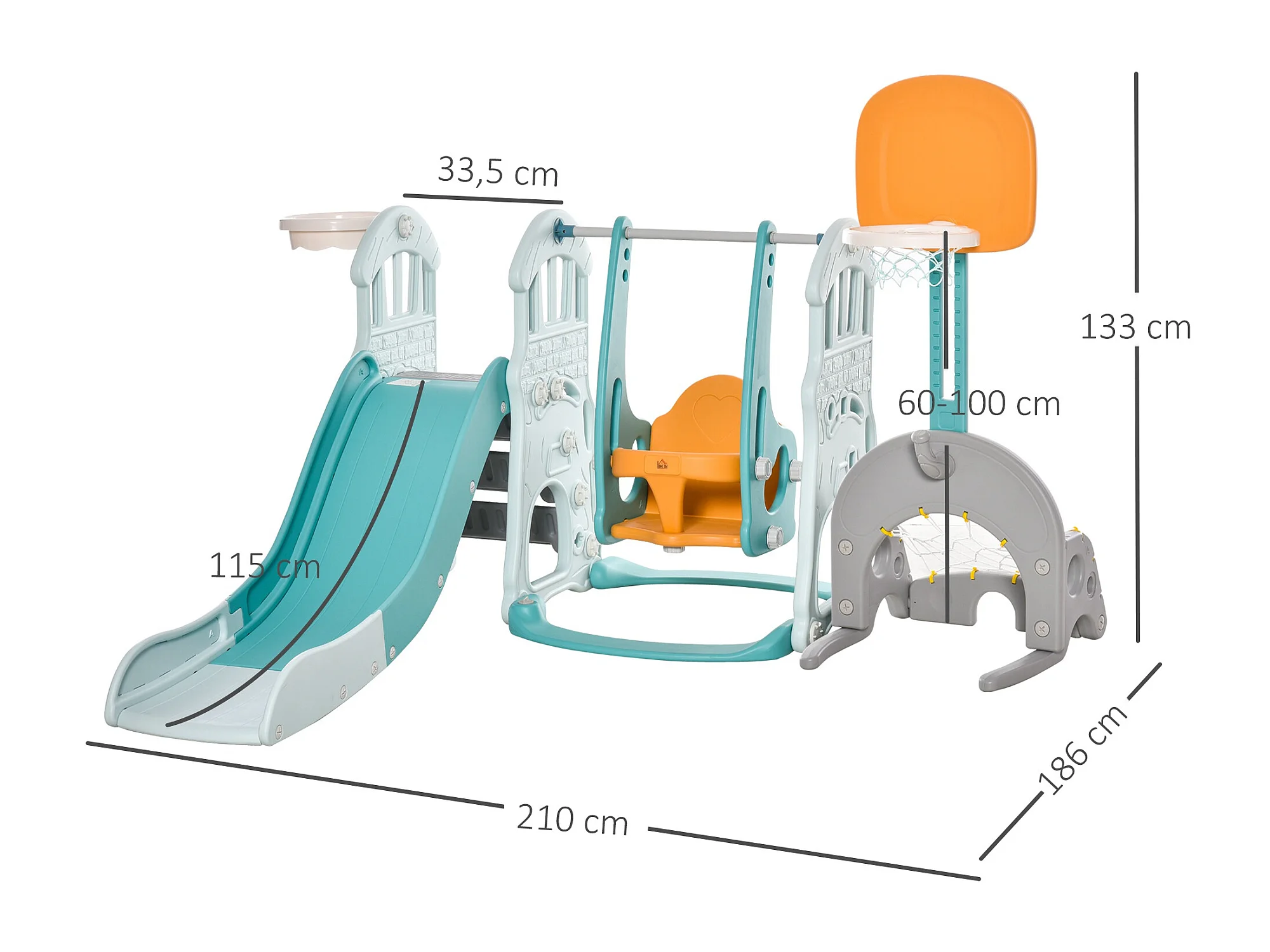 Tobogán y columpio para niños turquesa, gris y naranja 210x186x133 cm HOMCOM