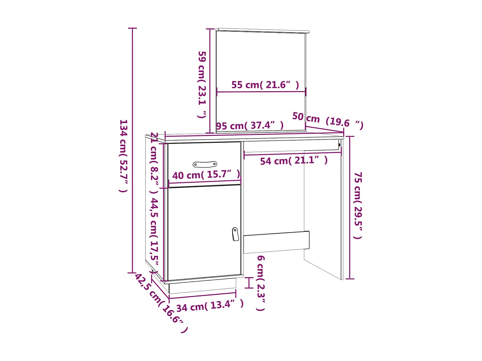 Mesa tocador de madera maciza de pino negra 95x50x134 cm ES897237